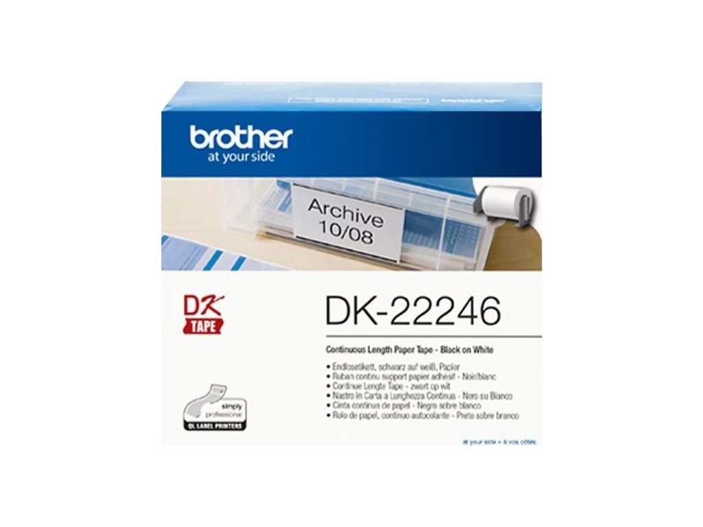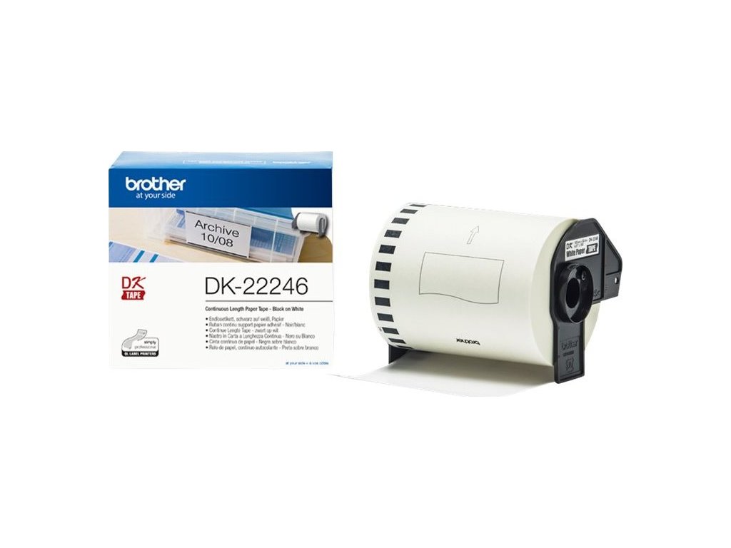 Brother DK-22246 černá na bílé. Papír s kontinuální délkou papíru - šířka 103 mm. Páska je dlouhá 30,48 m.