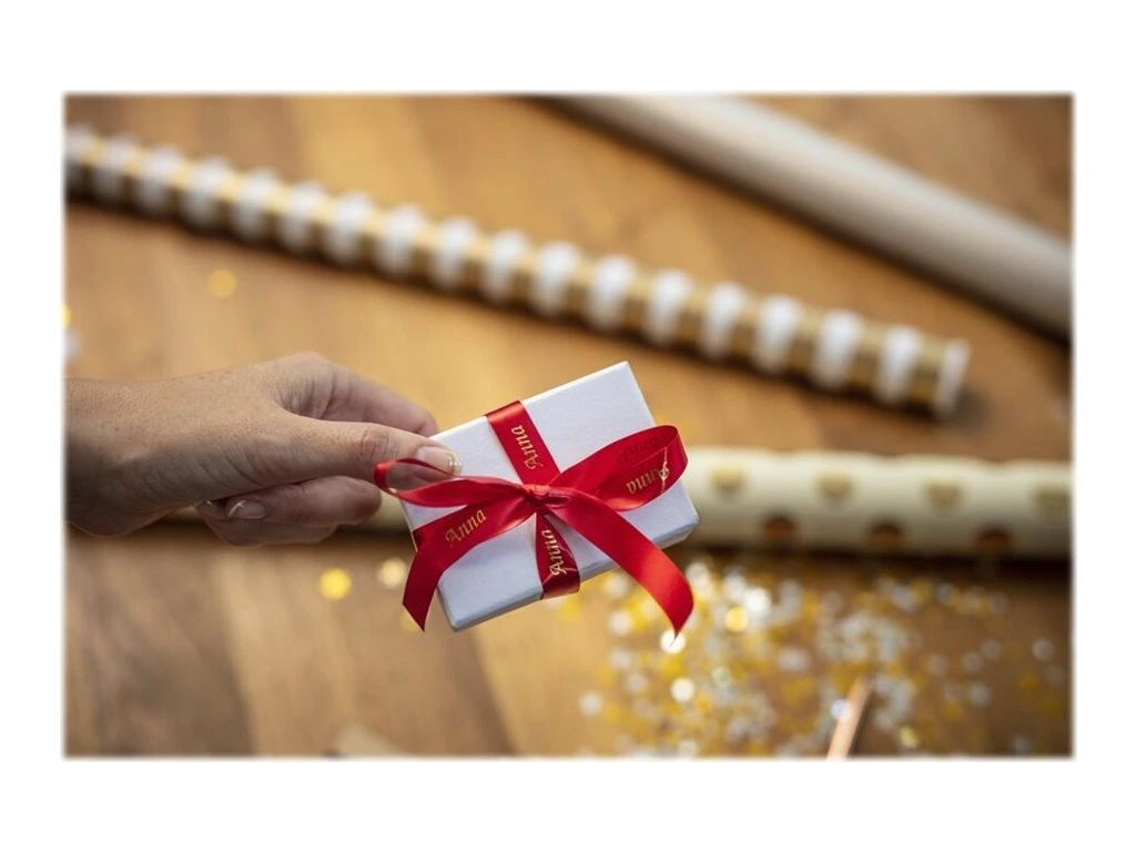 BROTHER TZE-RW34 - kazeta TZ šířky 12mm, TEXTILNÍ páska 4m- pro tvorbu dárků - NELEPÍCÍ -ČERVENÁ PÁSKA ZLATÝ POTISK gold