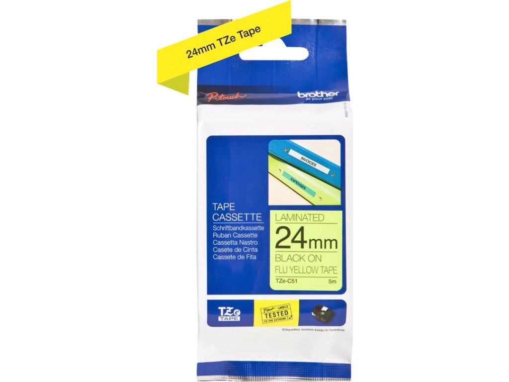 Originální kazeta s páskou Brother TZe-C51 - černý tisk na fluorescenční žluté, šířka 24 mm