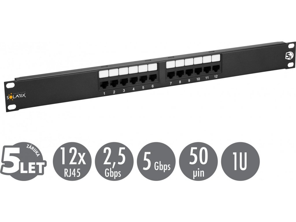 19" patch panel Solarix 12 x RJ45 CAT5E UTP 150 MHz černý 1U SX12-5E-UTP-BK