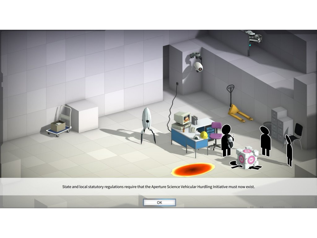 A i když budou občas hádanky ztížené střílnami, kyselinou a laserovými poli, Vybudete mít k dispozici vychytávky z herPortal. Namátkou jmenujme (nepřekvapivě)portály, propulzní a repulzní gely, vystřelovací plošiny nebo oblíbenou kostkuspolečnici.