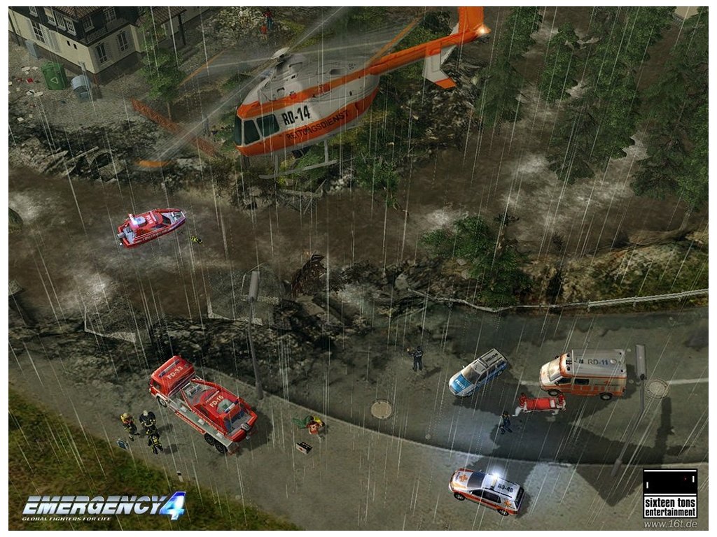 Emergency 4 v sobě kombinuje návykovou real-timovou strategickou hru a skutečnousimulaci. Hráčovým úkolem je přesná koordinace záchranářských týmů, které musízvládnout kritické situace vážných nehodnebo katastrof. Jako šéf celé operace vydává příkazy speciálním vozidlům a samotným záchranářům - hasičům, zdravotníkům, policistům a technikům. Poprvé v historii celé herní série Emergency jsou všechny mise kampaně spojeny do jedné souvislé hry. Děj je zasazen do hustě obydleného města, kde je nutné kromě hlavní dějové linie řešit také nespočet vedlejšíchúkolů, které tak jednotlivé operace mezisebou propojují. Další důležitou částíhry je také ekonomické vedení resortu nebo správná příprava na nadcházející misi. Hráč musí pružně reagovat na řadu úkolů, které je nutné plnit ve dne, v noci iza nejrůznějšího počasí