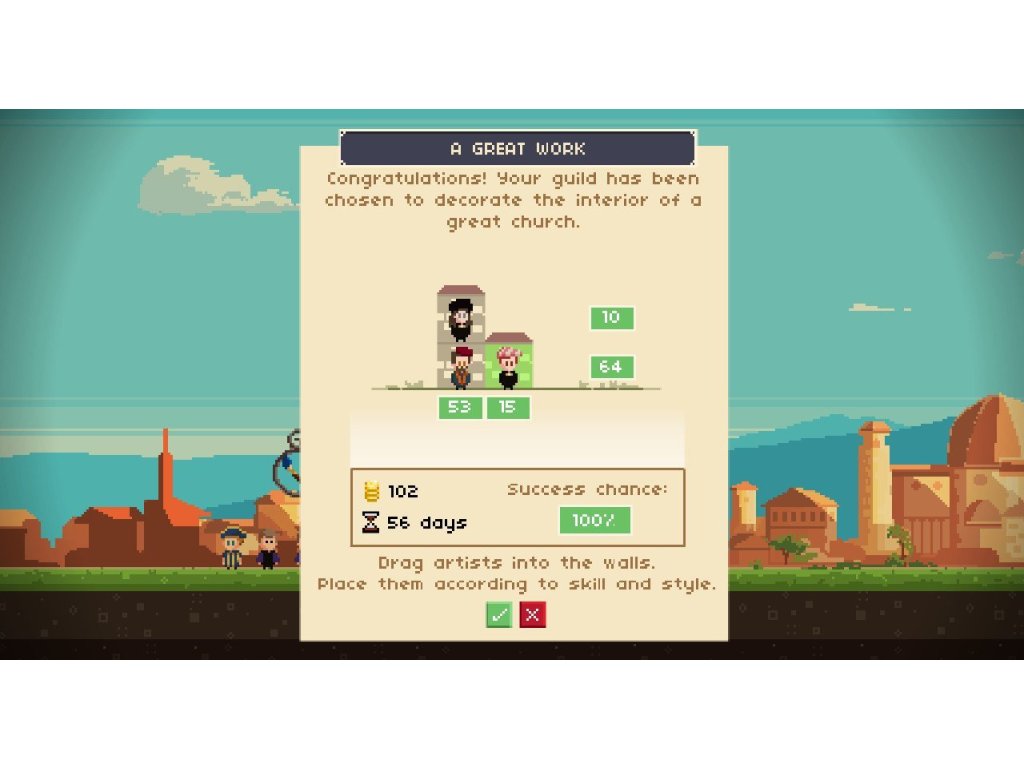 Painters Guild je jednoduchá budovatelská strategie, kde máte na starosti chod vaší malířské dílny. Taková dílna se samozřejmě neobejde bez malířů, kteří vám vydělávají peníze malováním obrazů na zakázku. Díky tomu můžete svoji dílnu vylepšovat a rozšiřovat, expandovat do jinýchměst a také najímat další malíře. Ti jsou však často spíše zátěží, protože mohoubýt zatčeni a propuštěni mohou být pouze za tučný poplatek, nebo mohou onemocnět vážnou nemocí a rozšířit ji mezi své kolegy, případně mohou být popraveni za svou orientaci. Je proto třeba dávat pozor a o své umělce se starat.