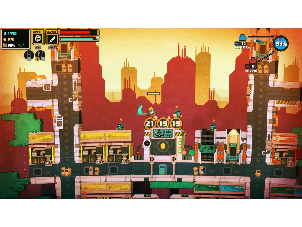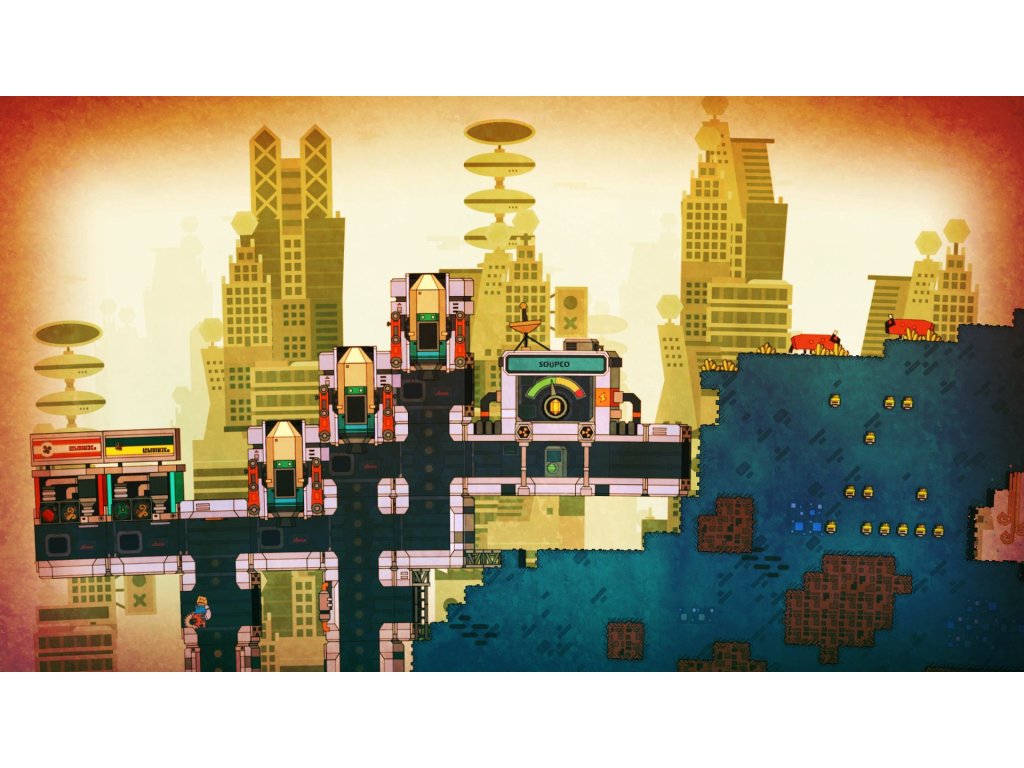 Vítejte v SoupCo! V galaxii Nom Nom postavte a automatizujte gigantické továrnyna polévky na neprobádaných planetách pocelém vesmíru, sklízejte flóru a faunu,abyste je proměnili v řemeslné polévky,a dostaňte svůj produkt do kuliček galaxie!