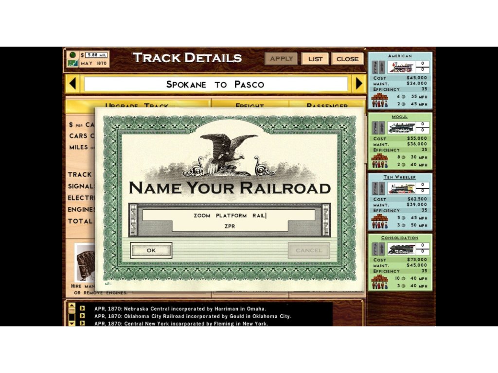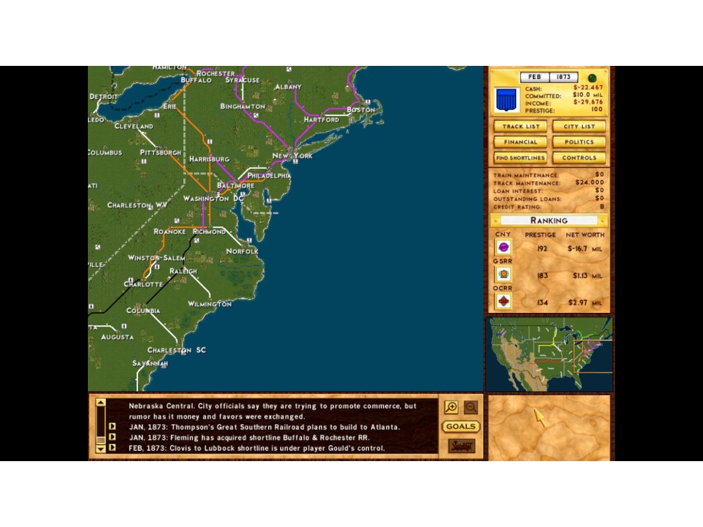 Rails Across America je hra o železničních impériích v Severní Americe, pokrývající období od roku 1830 do blízké budoucnosti. Je to strategická hra v reálném čase s příchutí "simu". Rails umožňuje stovky tratí s tisíci vlaků křižujících kontinent. Hráči se musí soustředit na strategická rozhodnutí: kam expandovat, kdekonkurovat a kdy požádat o přízeň vládních úředníků, odborových předáků a dalších mocných osobností.