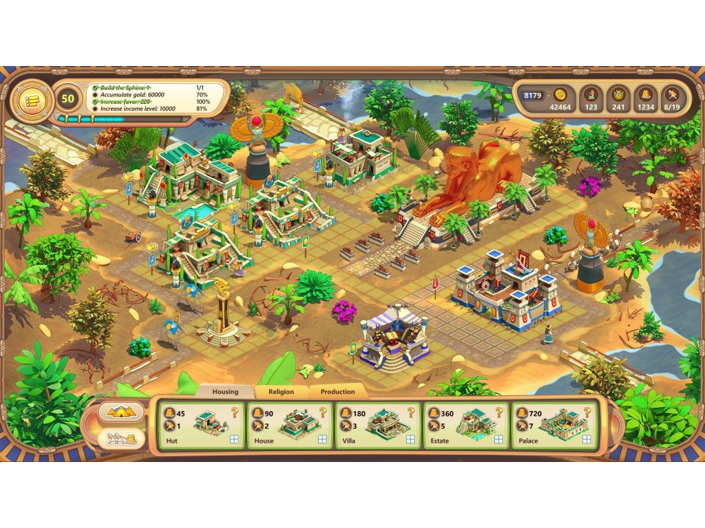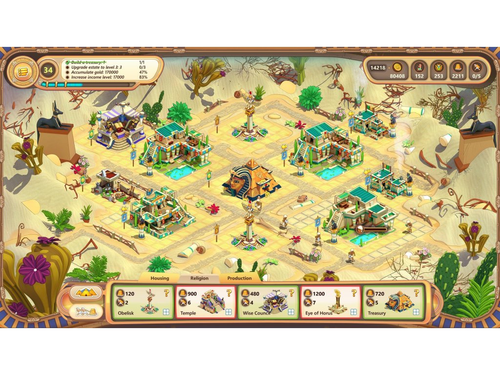 Vraťte Egyptu jeho bývalou slávu a získejte přízeň bohů při obnově starověké civilizace od základů! Od první chýše, kterou postavíte, až po poslední palác, který postavíte, proměníte rozbitou a neúrodnou půdu ve zářný příklad pro národy!