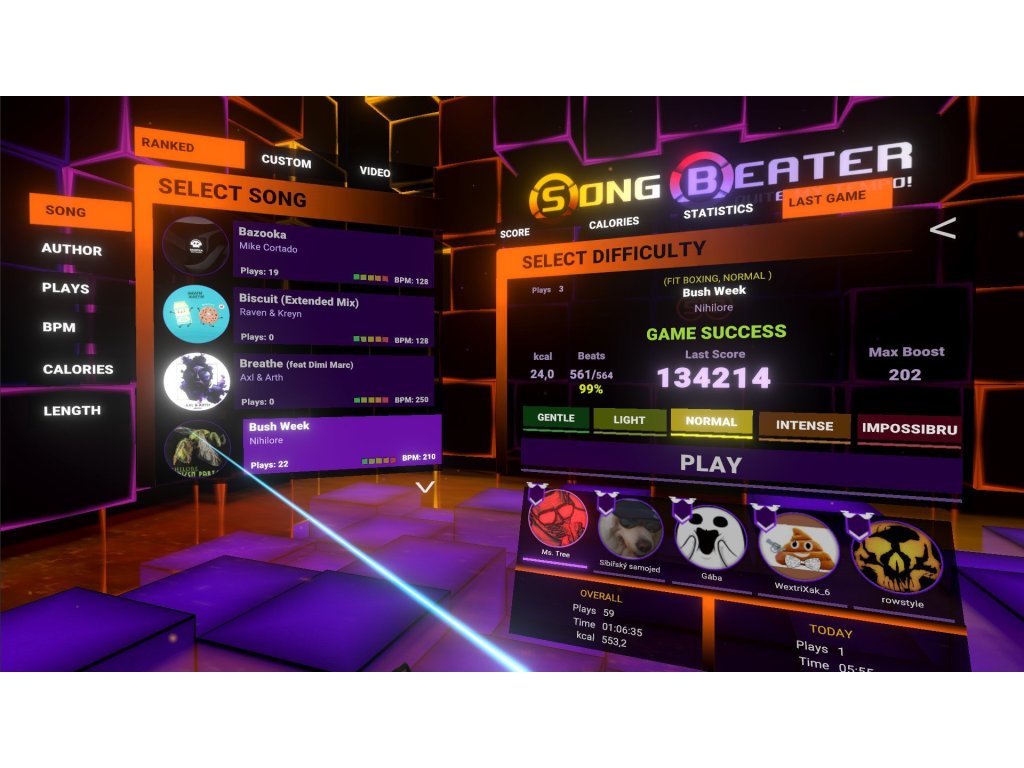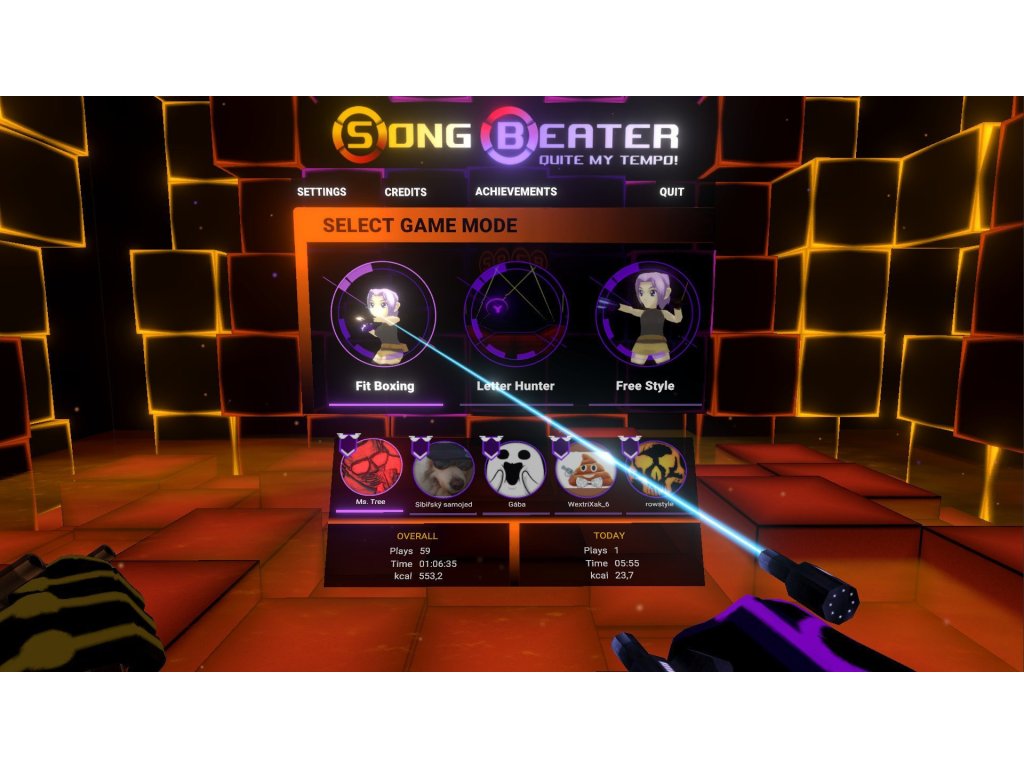 Song Beasts je rytmická VR hra. Poraztenáročné písně holými pěstmi ve službě Fit Boxing, ovládejte různé zbraně (čepele, phasery, hůl, pilu) ve volném stylu nebo se soustředte na tok textu v režimu Letter Hunter. Globální a přátelské žebříčky, spálené statistiky kalorií. Podporavlastních písní a videí. 5 herních režimů, pro jednotlivce a více hráčů.Včetně45 a více písní a videí, podpora vlastních skladeb. Globální a přátelské výsledkové tabulky, jedinečný režim rodinné oslavy. Hráčské úspěchy a statistiky včetněodhadovaných kalorií spálených pro vašefitness cíle.