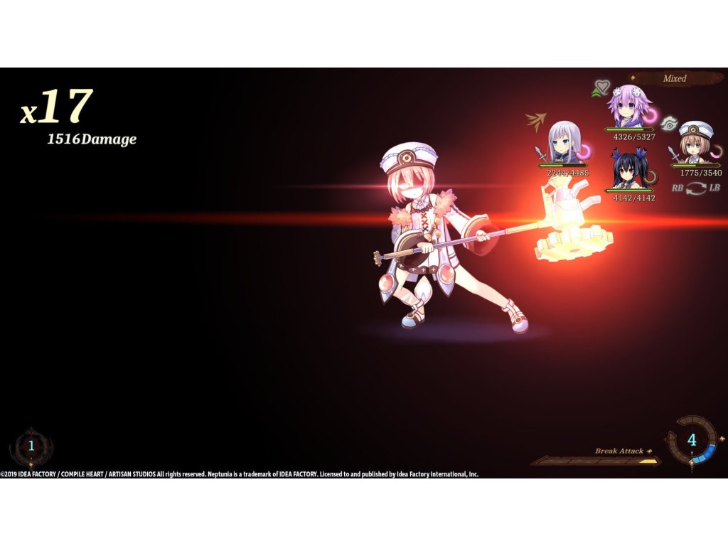 Nové já ve 2D: vaše oblíbená bohyně sestoupí ze tří dimenzí do dvvou! Artisan Studios a Compile Heart v tomto akčním RPGhrdě představují nová, živoucí prostředí a nově vyvinuté ručně kreslené 2D animace! Artisan Studios a Tsunako spolupracují na vytvoření nového pozadí a charakterů, takže fanoušci i nováčci mohou vidět Gamindustri v nové 2D perspektivě.