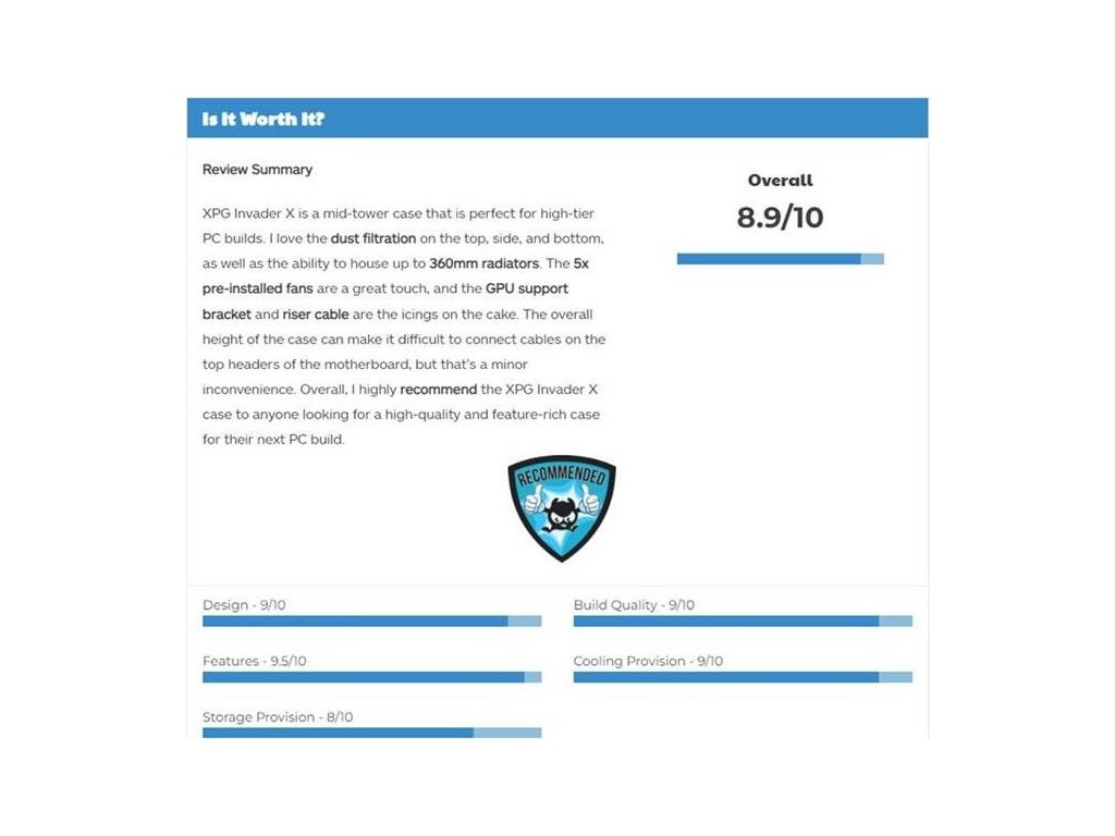 Recenze: https://tech4gamers.com/xpg-invader-x-pc-case-review/