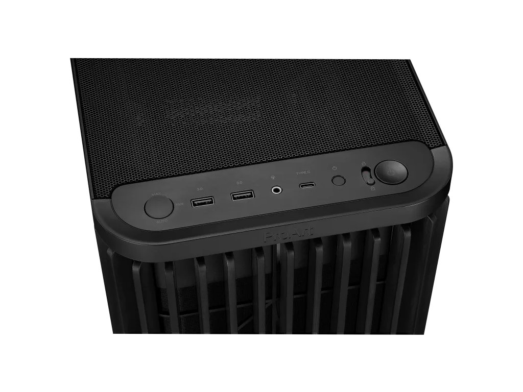 ProArt PA401 Wood Edition se pyšní dřevěným předním panelem, který vytváří výrazný a elegantní vzhled a zároveň podporuje udržitelnost. Použité dřevo je certifikováno organizací Forest Stewardship Council® (FSC®) a je upraveno šestistupňovým procesem povrchové úpravy. Skříň navíc nabízí vynikající vestavěné chlazení – dva 160mm ventilátory vpředu a jeden 120mm ventilátor vzadu, doplněné o integrovaný hub pro ventilátory, který zajišťuje optimální proudění vzduchu.