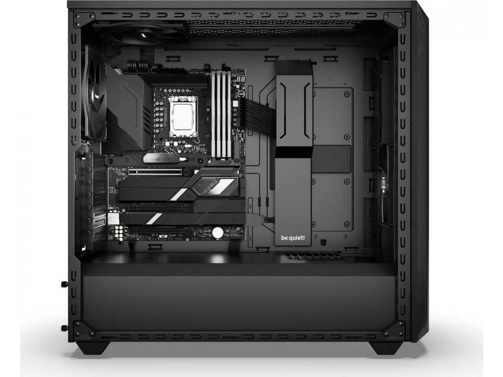 PC skříň Be quiet! SHADOW BASE 800 přináší komfortní prostor pro uložení komponent a optimalizované proudění vzduchu. Díky síťovanému provedení předního panelu a trojici ventilátorů Pure Wings o velikosti 140 mm je zajištěn vysoký průtok vzduchu a tím také maximální výkon celé sestavy. Ventilátory jsou navíc navrženy pro tichý provoz, takže i při maximální rychlosti dosahují pouze 21,9 dB(A). Při stavbě moderního počítače na velikosti záleží. PC skříň Be quiet! SHADOW BASE 800 v provedení Middle Tower nabízí komfortní prostor, se kterým projevíte svoji kreativitu při skládání a nemusíte se výrazně omezovat.