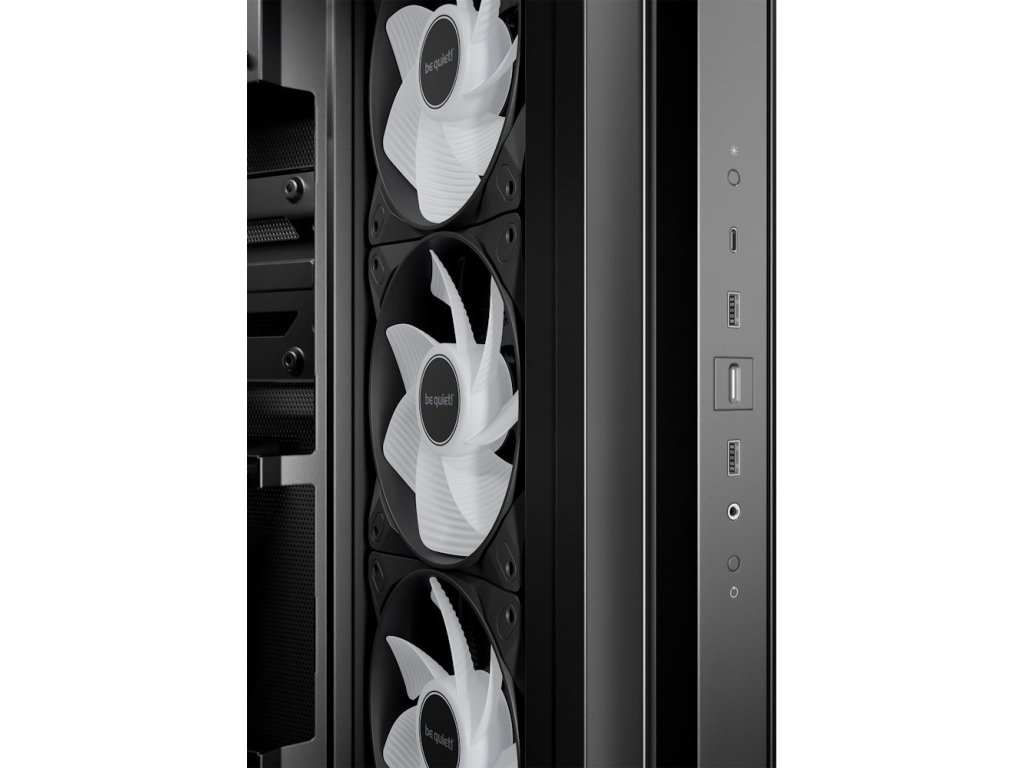 Skříň Be quiet! LIGHT BASE 500 LX poskytuje prostorné a stylové útočiště pro vaše našlapané komponenty. Průhledný boční a čelní panel umožní sledovat komponenty v celé jejich naleštěné kráse. Uvnitř skříně najdete 4 předinstalované 120mm PWM ventilátory Light Wings LX, které zajišťují tichý chod, efektivní průtok vzduchu a optimální chlazení. Díky šikmému výsuvnému rámečku pro ventilátor proudí vzduch přímo na grafickou kartu a postará se například o chlazení výkonných herních sestav.