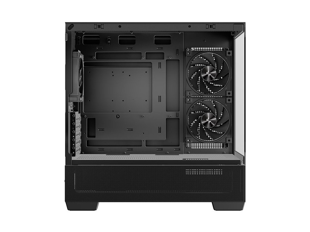 - Tři předinstalované PWM ARGB ventilátory s reverse-blade designem na boku a standardním provedením vzadu.