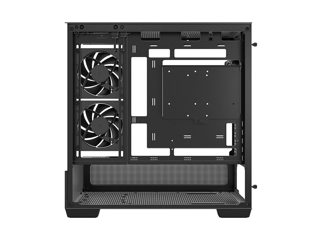 Skříň DEEPCOOL CG380 3F nabízí kompaktní rozměry 451 × 437 × 235 mm s plně proskleným panelem pro efektní prezentaci hardwaru. Spodní komora s perforovaným krytem zajišťuje optimální přívod vzduchu k grafické kartě a zdroji, zatímco podpora Micro ATX základních desek s konektory na zadní straně umožňuje skrýt kabely pro čistý vzhled sestavy.