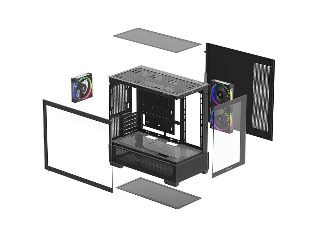 DEEPCOOL Case CG380 3F, mATX, ARGB, Průhledná bočnice, 3x120mm Fan, černá