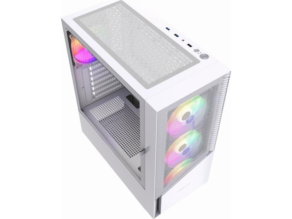 bílá herní ATX počítačová skříň s ARBG podsvícením