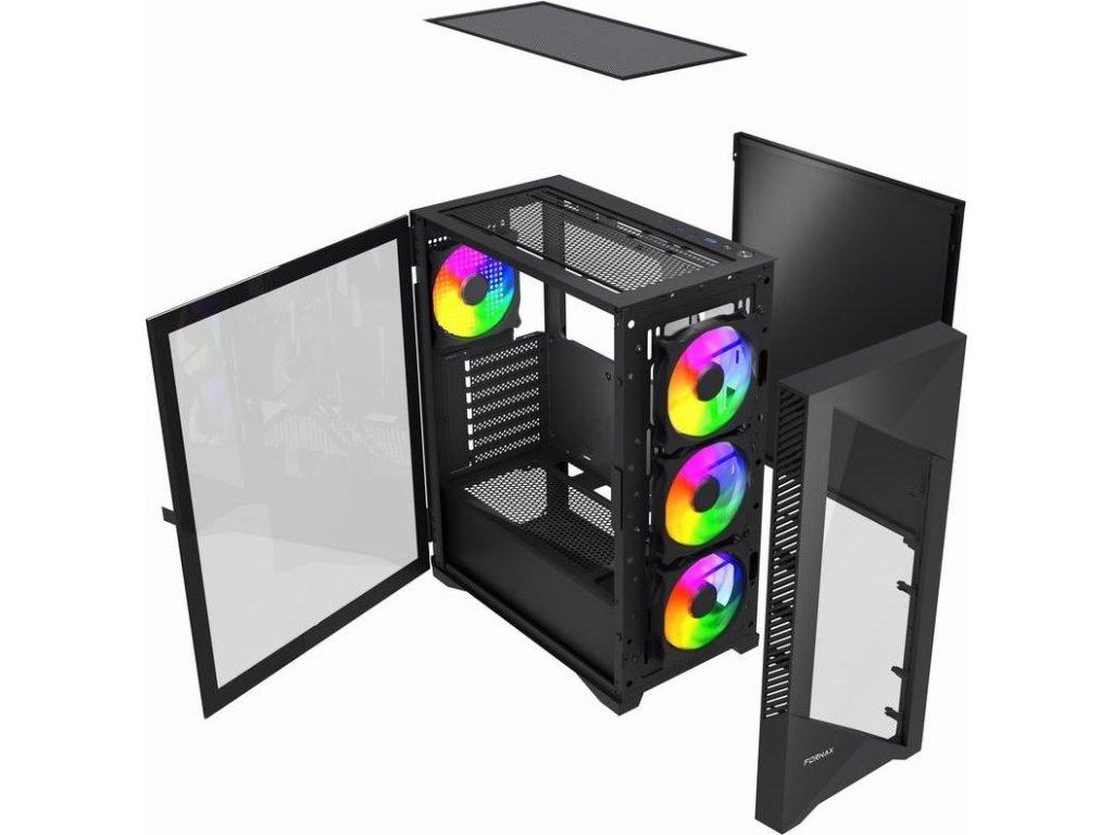 černá herní ATX počítačová skříň s ARBG podsvícením
