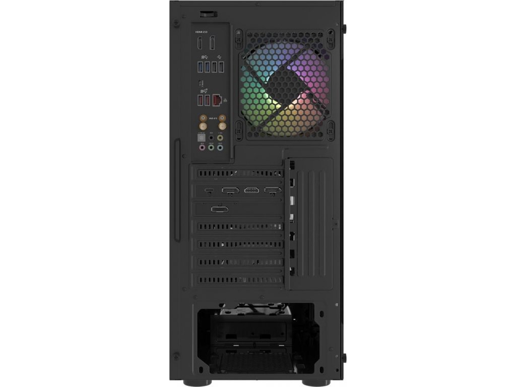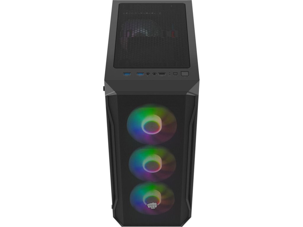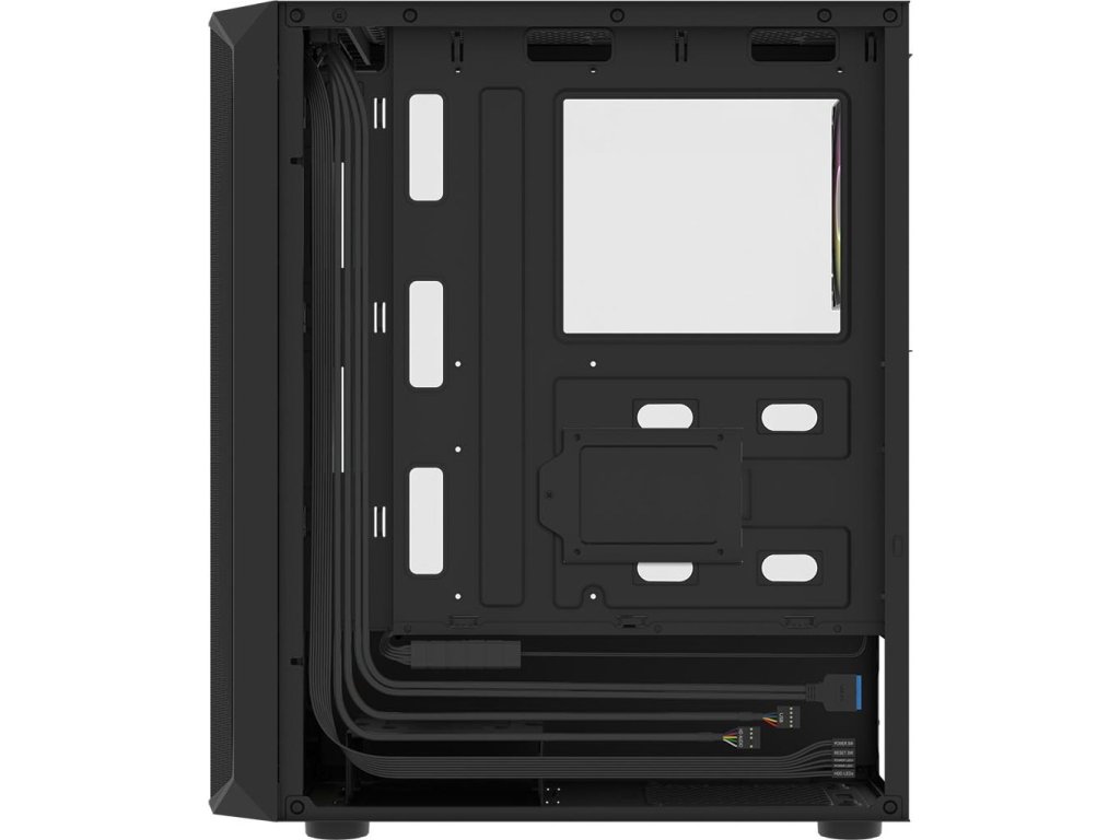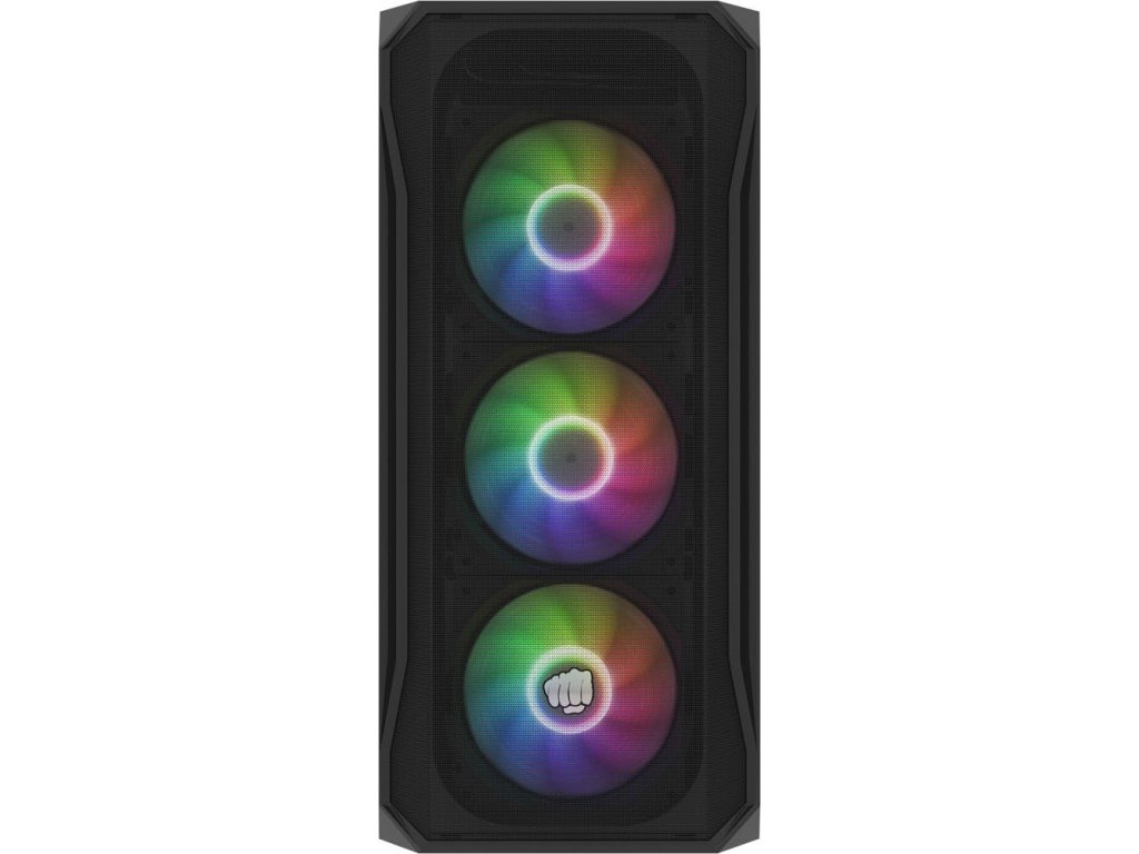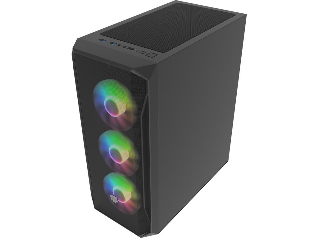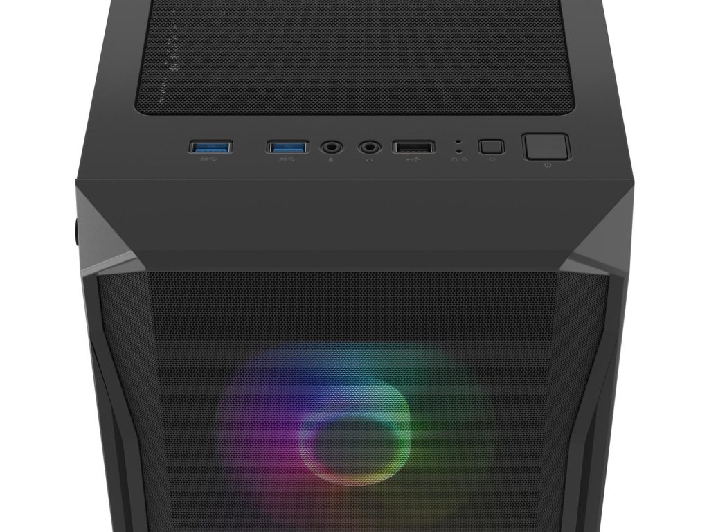 Futuristický geometrický tvar se bude líbit jak hardcore hráčům, tak i těm, kteří dávají přednost decentnějšímu designu. Levý boční panel z tvrzeného skla je příležitostí k odhalení vnitřku skříně a výkonných komponent ukrytých uvnitř - také s RGB, zejména proto, že instalované ventilátory jsou předsvětlené.