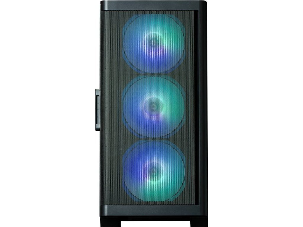 Počítačová skříň v provedení Mini tower. Na horním panelu jsou umístěny dva USB 3.0 porty, jeden USB 2.0 port, sluchátkový výstup a vstup pro mikrofon. Skříň je osazena čtyřmi ventilátory s ARGB podsvícením o velikosti 120 mm a umožňuje pohodlné umístění 240 mm dlouhého výměníku vodního chlazení na přední či horní straně. Ve skříni je dostatek prostoru pro chladič CPU do výšky až 157 mm a grafickou kartu o délce až 320 mm. Dodávána je bez zdroje.