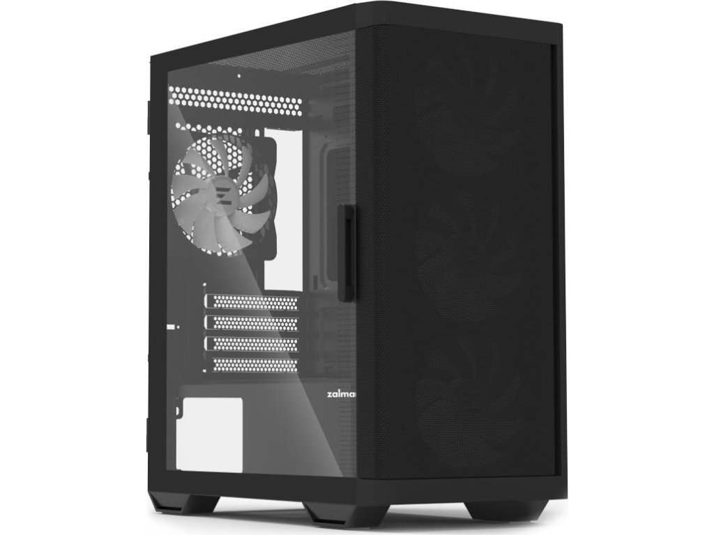 V základu je skříň ZALMAN Black osazena čtyřmi ventilátory s ARGB podsvícením, do vnitřního prostoru se vměstná například také výměník vodního chlazení, chladič CPU a samozřejmě grafická karta. Boční strana umožňuje snadný přístup do vnitřku skříně a snadnou výměnu komponent.