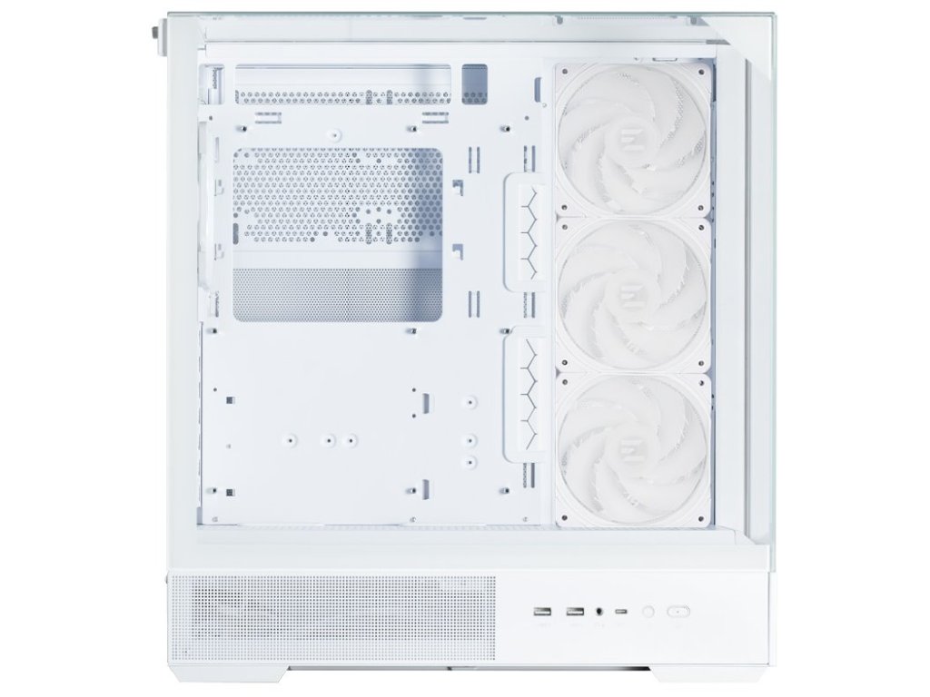 Skleněné panely lze pohodlně demontovat i bez šroubováku, takže ke komponentům máte rychlý a jednoduchý přístup. Vnitřní prostor PC skříně ZALMAN P40 Prism Plus podporuje grafické karty až 420 mm dlouhé nebo vodní chlazení s radiátorem až 360 mm na bočních pozicích a 120 mm vzadu. Nechybí ani moderní konektivita v podobě USB-C portu, dvojice USB 3.0 konektorů nebo kombinovaného audio jack pro mikrofon/sluchátka. Samozřejmostí je také důraz na efektivní proudění vzduchu. Díky konstrukci s předinstalovanými ventilátory a otevřenému provedení zajišťuje skříň ZALMAN P40 Prism Plus optimální airflow při vysoké provozní zátěži.