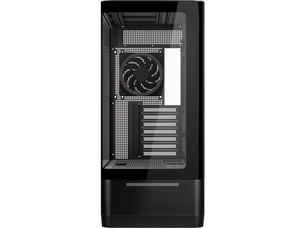 Skříň vyniká vysokou kompatibilitou se základními deskami se zadními konektory (back-connect), jako jsou ASUS BTF, MSI Project Zero nebo Gigabyte Project Stealth, a podporuje formáty až SSI-CEB (E-ATX). Díky klasickému uspořádání se zdrojem ve spodní části v oddělené komoře je výrazně užší než typické showcase skříně, což usnadňuje vedení kabelů a udržuje vnitřek přehledný.