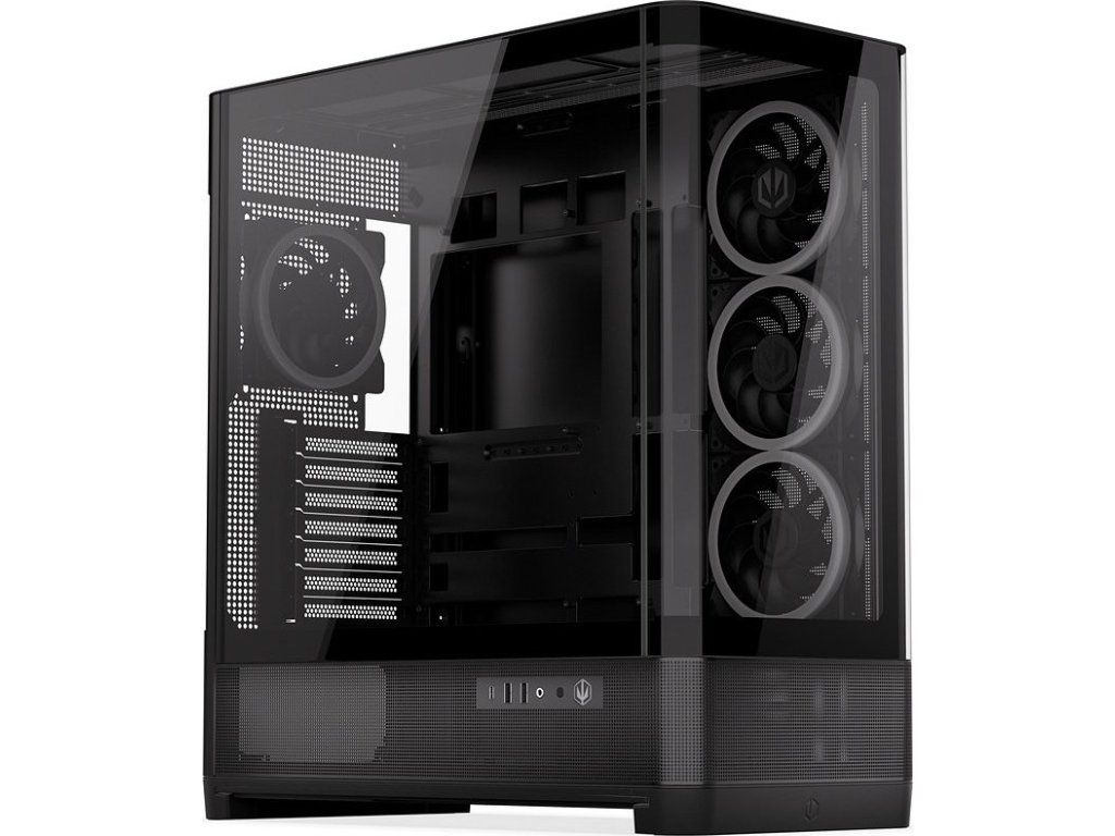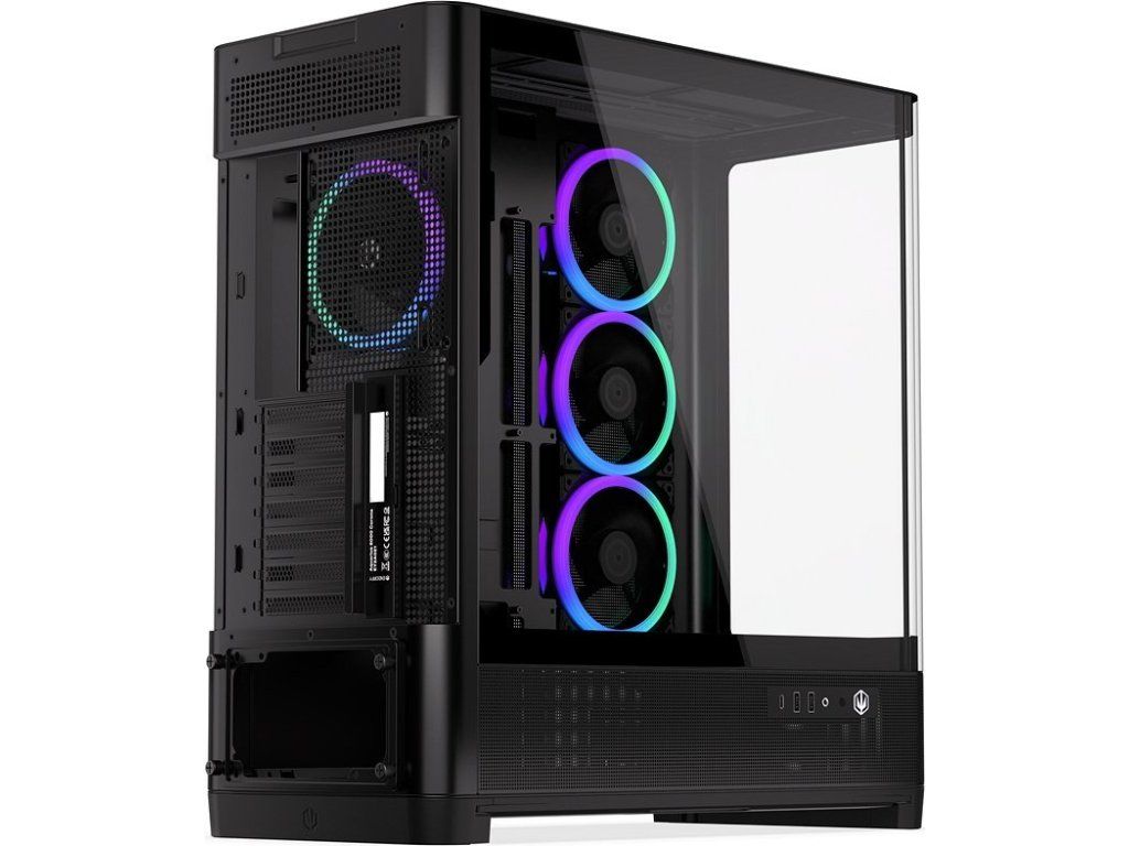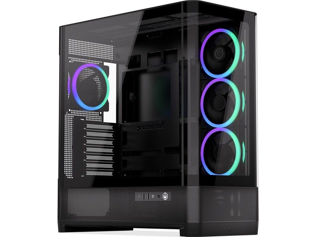 Endorfy Aquarius 8000 Corona představuje prémiovou PC skříň navrženou pro efektní prezentaci komponent prostřednictvím velkých ploch z tvrzeného skla – bočního panelu a zakřiveného předního panelu. Elegantní štíhlá konstrukce v kombinaci s kovovými prvky vytváří odlehčený celek, který zabírá méně místa než běžné panoramatické skříně této kategorie.