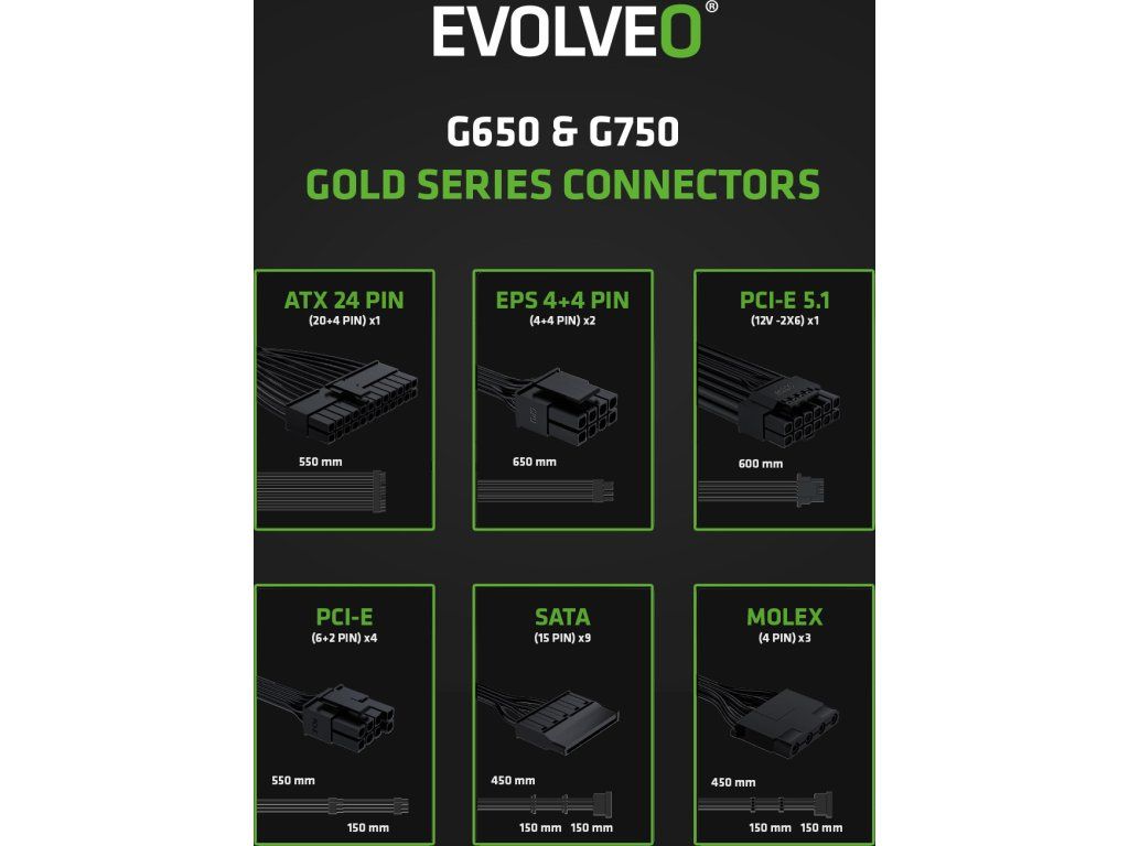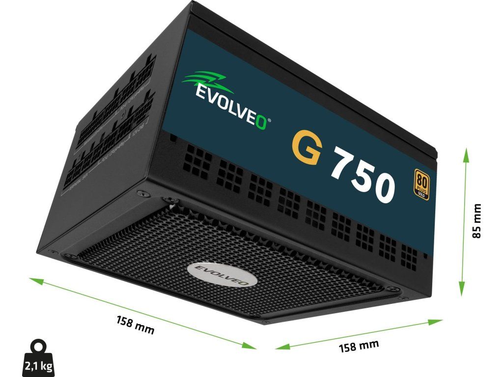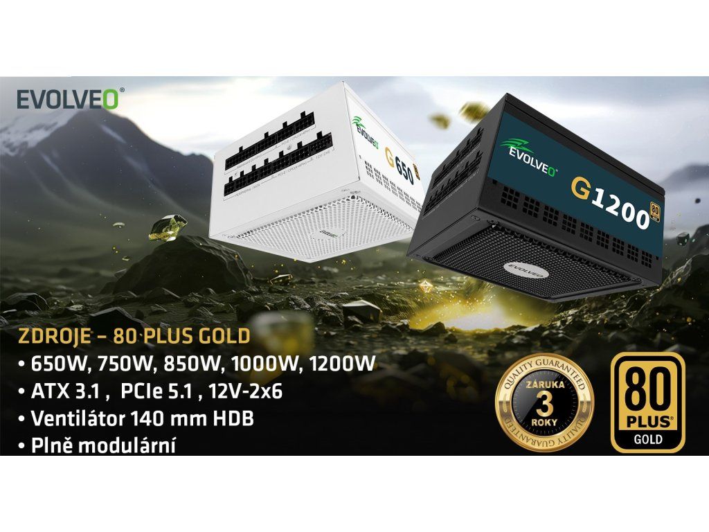 EVOLVEO G850 zdroj 850W, 80+ GOLD, ATX 3.1, aPFC, 140 mm ventilátor