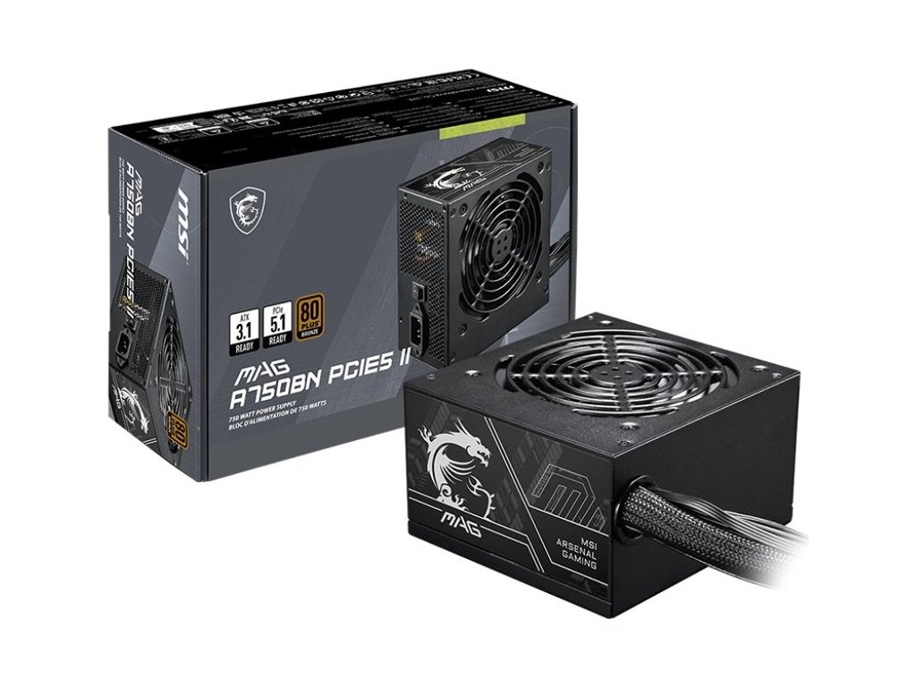 MSI zdroj MAG A750BN PCIE5 II/ 750W/ ATX/ akt. PFC/ 5 let celková záruka/ 120mm ventilátor/ 80PLUS Bronze