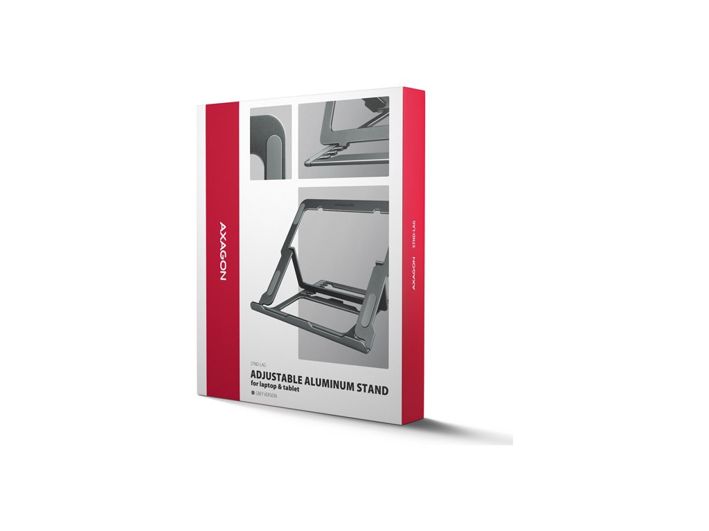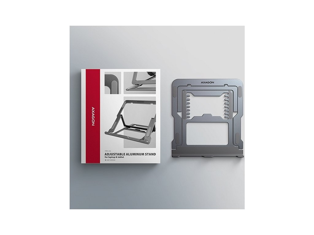 AXAGON STND-LAG, hliníkový stojan pro notebooky 10"-17.3", nastavitelná výška, šedý