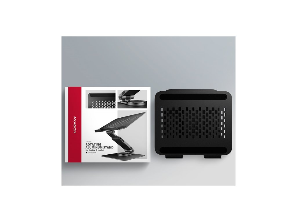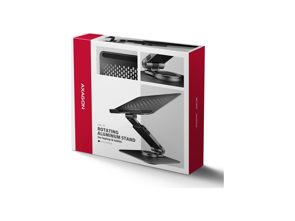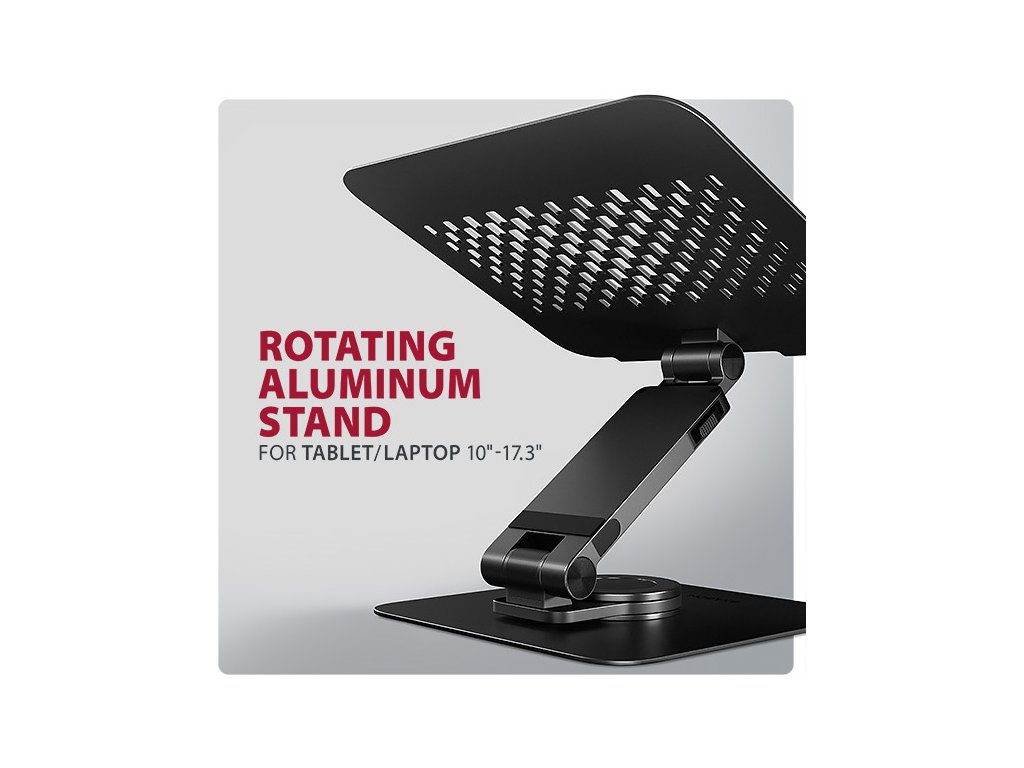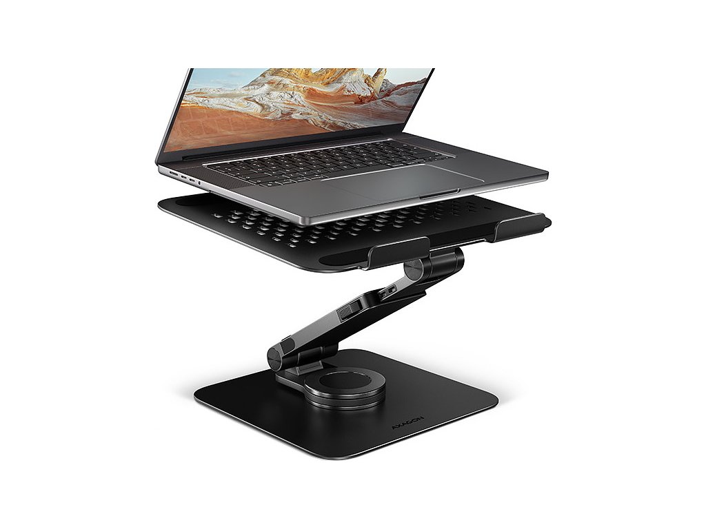 AXAGON STND-LRB, hliníkový stojan pro notebooky 10"-17.3" s nastavitelnou výškou, úhlem a 360° rotací, černý