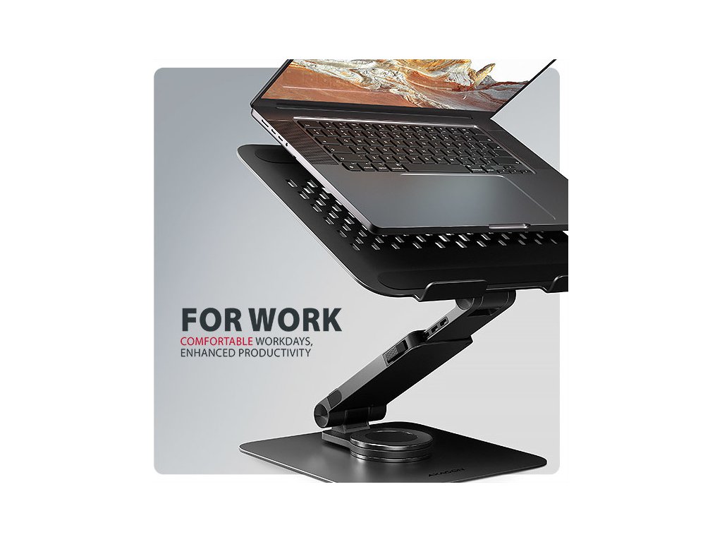 Podstavec pro notebook je vyroben z robustních hliníkových odlitků garantujících dlouhou životnost a spolehlivost. Díky protiskluzové úpravě zůstane vaše zařízení bezpečně na svém místě bez rizika nechtěných pohybů, aniž by došlo k jakémukoliv poškození povrchu notebooku nebo podložky. Tyto pečlivě navržené vlastnosti zaručují perfektní stabilitu pro váš notebook, tablet nebo oblíbenou knihu, což vám poskytne klid a pohodlí při každodenním používání.