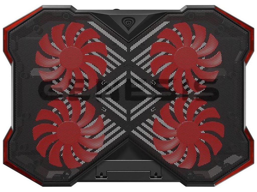 Genesis Oxid 260 je určen pro notebooky s úhlopříčkou obrazovky až 17,3 palce. Kovový panel s perforací na přední straně zajišťuje účinnou cirkulaci vzduchu, zatímco gumová podpěra základny zajišťuje váš mobilní počítač, zabraňuje jeho klouzání po povrchu podložky a chrání jej před náhodnými pády.