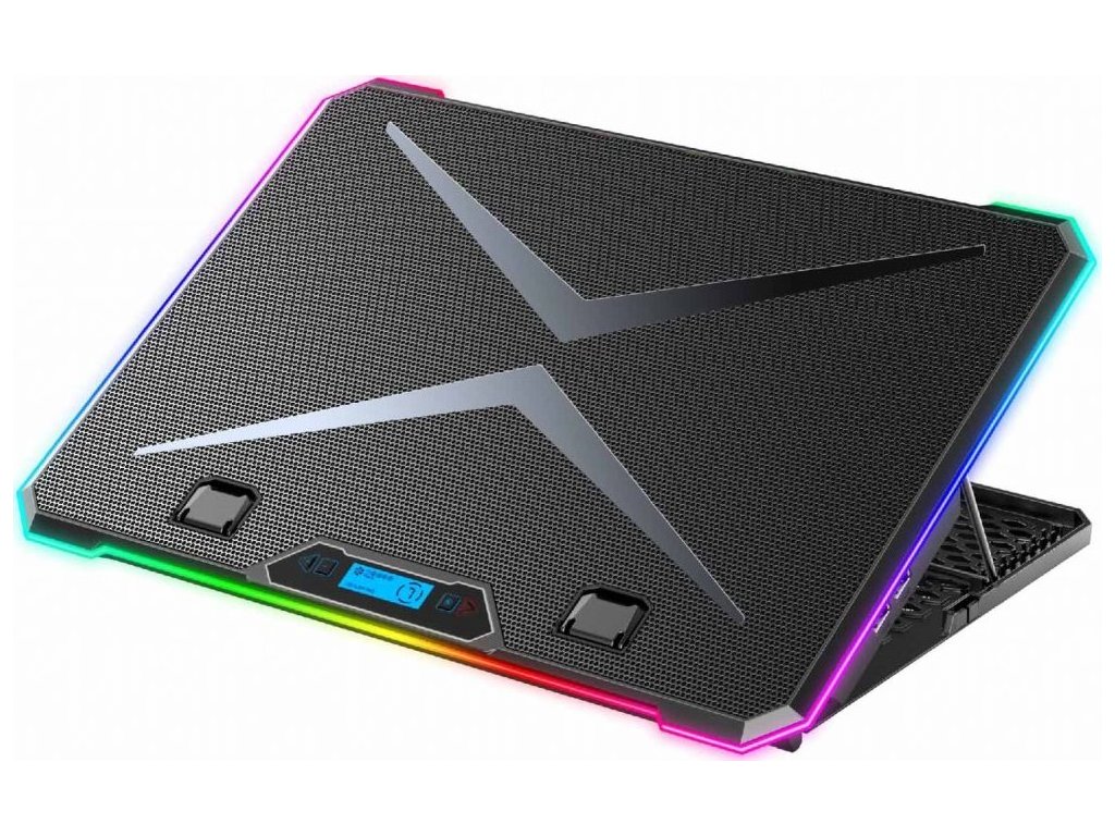 Chladicí podložku EVOLVEO Ania 9 RGB s RGB podsvícením využijete pro notebooky o velikosti 10-17". Bezesporu oceníte možnosti nastavení polohy a regulaci otáček ventilátoru. Pomocí tlačítek u displeje lze přepínat mezi třemi barevnými módy (modrá, zelená a červená) a čtyřmi RGB módy, které osvětlují okraj podložky. Podržením tlačítka pro ovládání barevných módů podobu delší 3s dojde k zapnutí/vypnutí LED na okraji podložky. Tlačítkem pro regulaci otáček lze navolit jednu ze 4 rychlostí ventilátorů a tyto pak zcela vypnout.