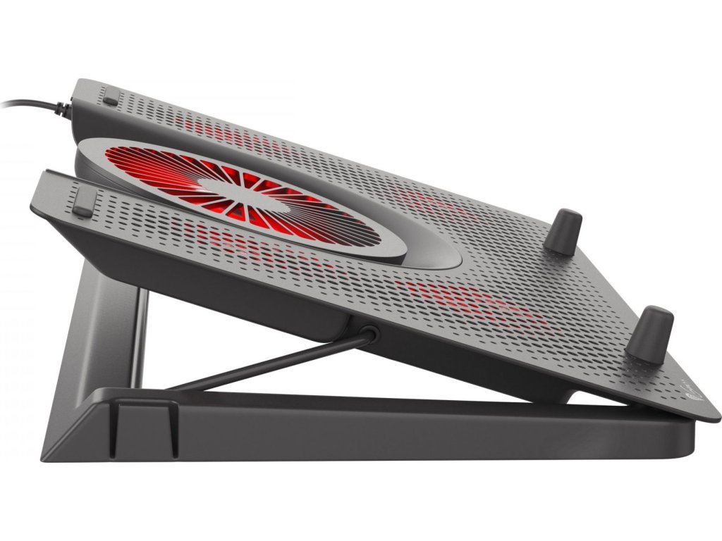 Podložka navíc obsahuje možnost nastavení úhlu sklonu v pěti úrovních, díky čemuž si můžete notebook nastavit v té nejpohodlnější poloze a zvýšit tím nejen komfort používání, ale i efektivnost cirkulace vzduchu. Podložka obsahuje gumové nožičky, které zabraňují přesouvání po stole.