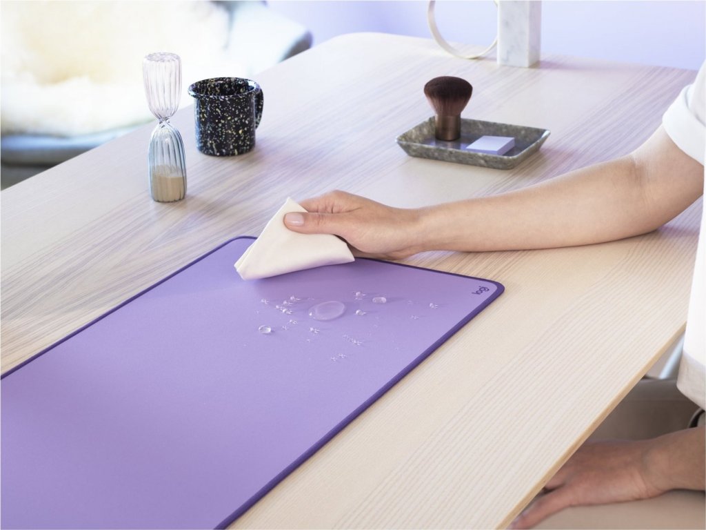 Podložka Logitech Desk Mat je opatřena vrstvou odolnou proti polití, která odolává případným nehodám – tekutiny lze snadno otřít vlhkým hadříkem.