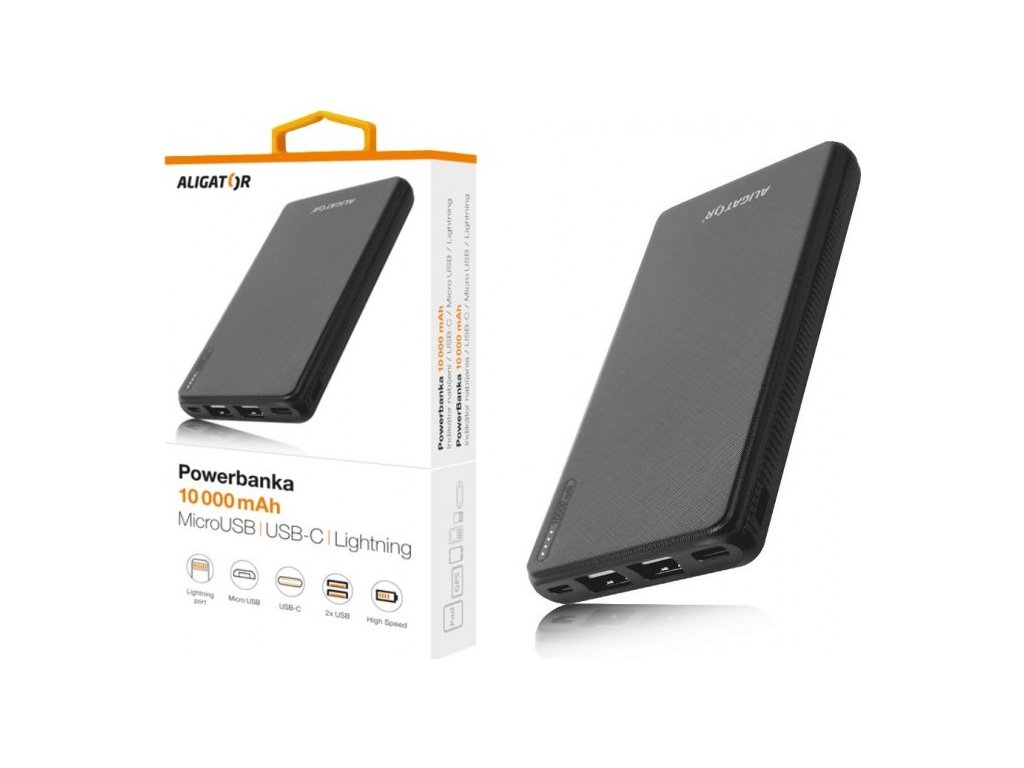 ALIGATOR PB1000, 10000mAh 3v1, micro/iPh/USB-C, černá