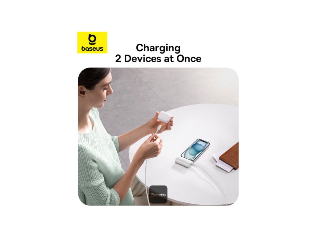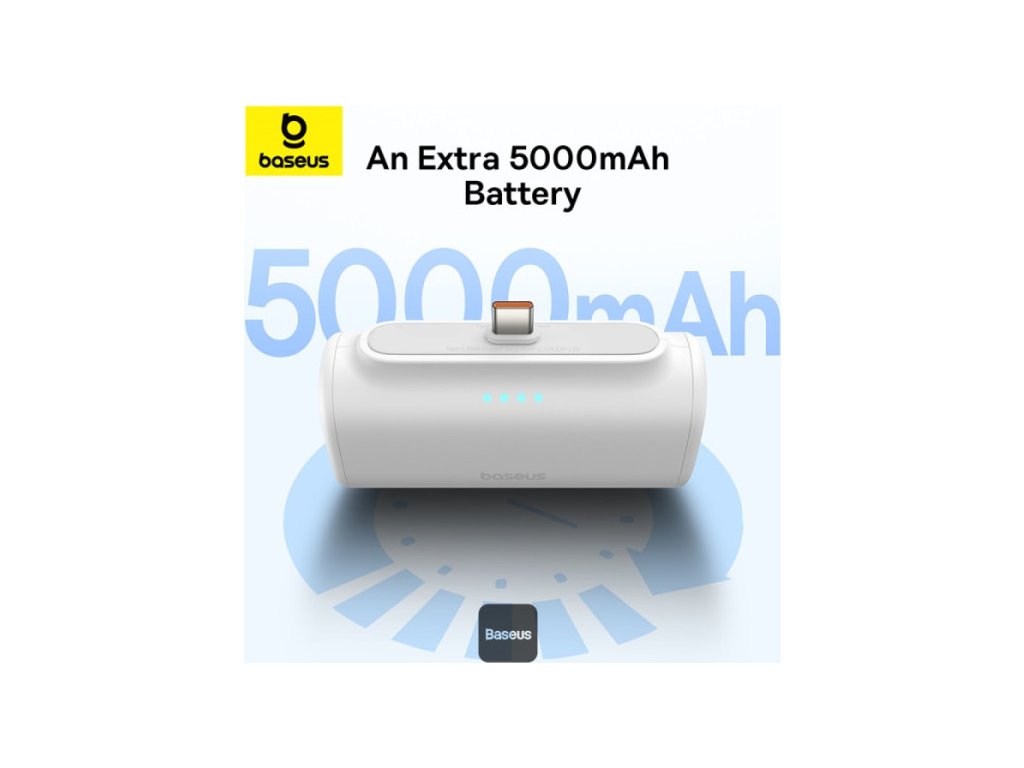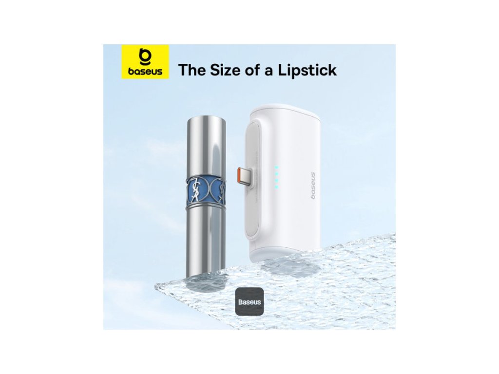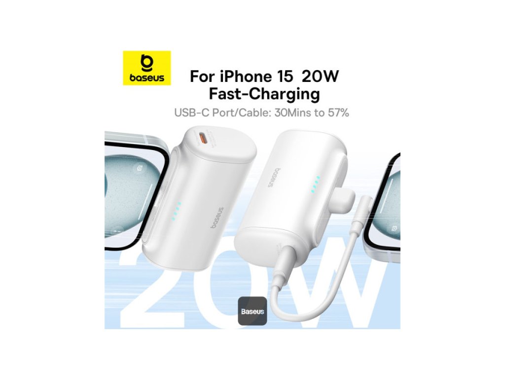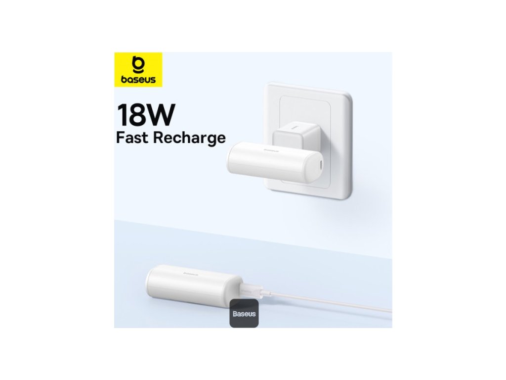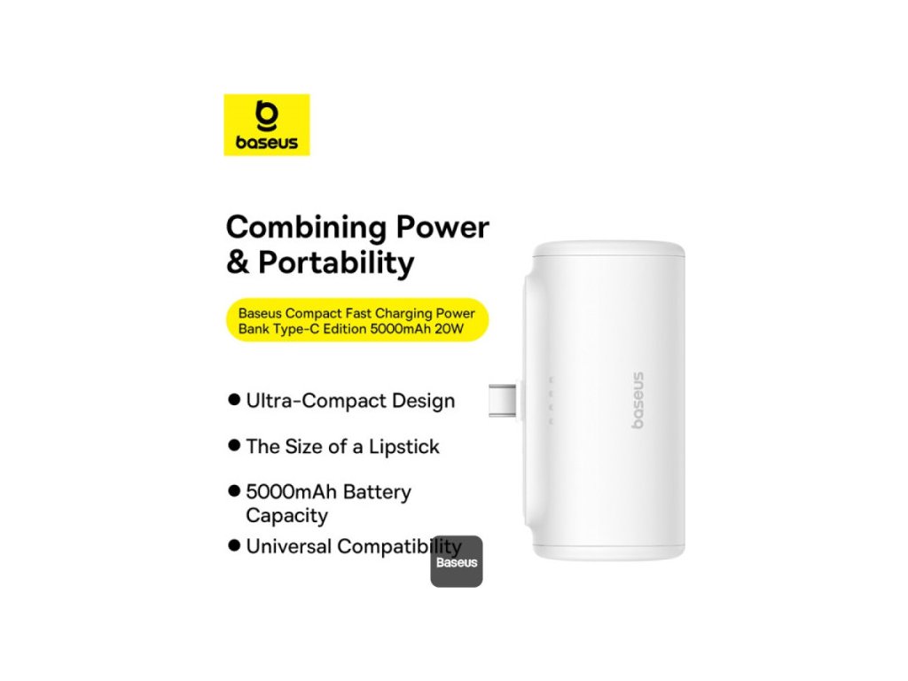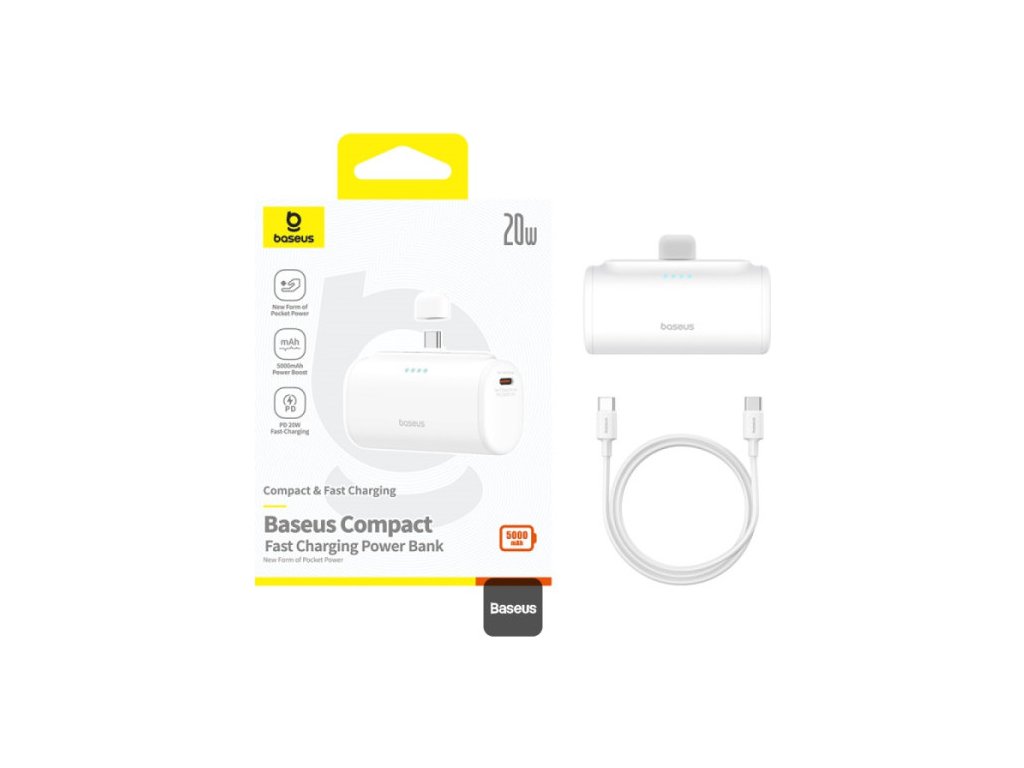 Baseus Compact Series 5000mAh rychlonabíjecí power banka 20W PD s vestavěným konektorem Type-C | Kapesní power banka na cesty - bílá
