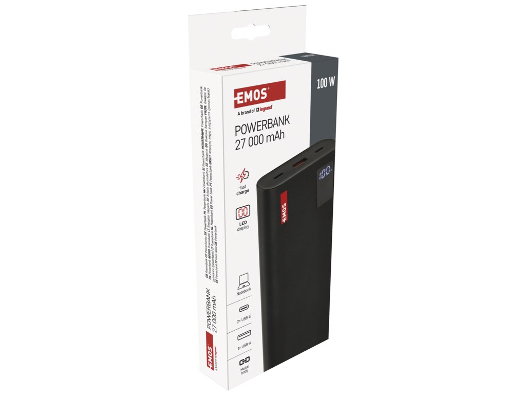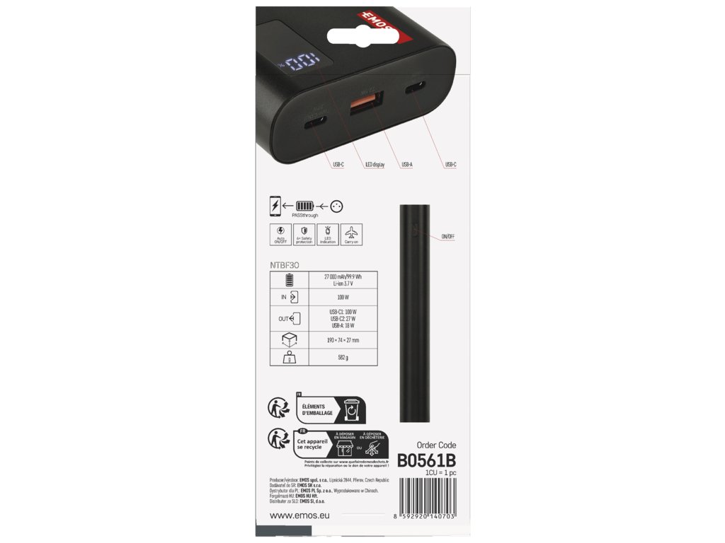 EMOS PWB NTBF30 27000MAH 100W PD 1×USB-C 1×USB-A