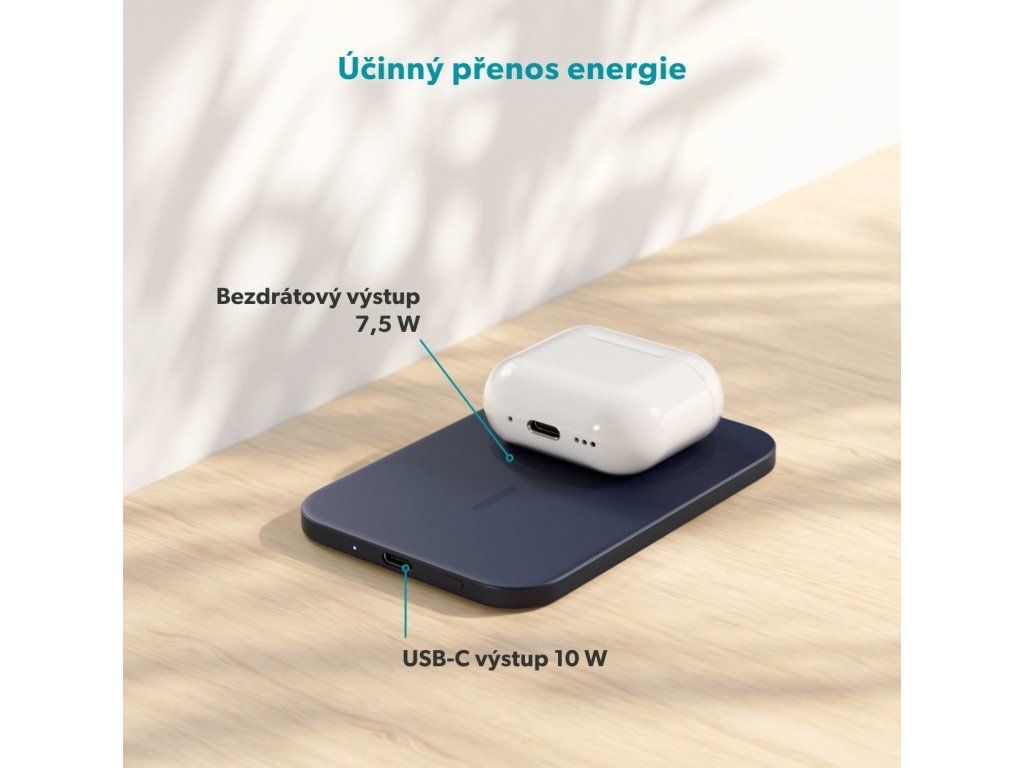 Hliníkové tělo powerbanky nejen působí elegantně, ale zároveň pomáhá efektivně odvádět teplo a udržovat stabilní výkon. Přední strana z tekutého silikonu zajišťuje lepší přilnavost k zádům telefonu a podporuje účinnější přenos energie. Bezdrátový výstup s výkonem až 7,5 W doplňuje možnost nabíjení přes USB-C s výkonem až 10 W. O bezstarostné používání se stará šestinásobná ochrana proti přepětí, přebití, přetížení, nadměrnému vybití, nadproudu a zkratu, takže se můžete spolehnout na bezpečné nabíjení doma i na cestách. Součástí balení je také praktický 0,3m USB-C na USB-C kabel.