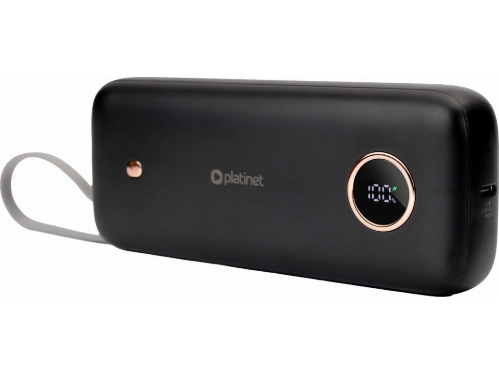 Platinet Powerbanka 20000 mAh 70W Power Delivery, 1xUSB-C, 1xUSB-A, kabel USB-C 1m, černá