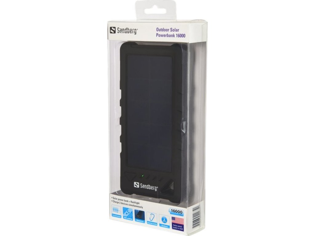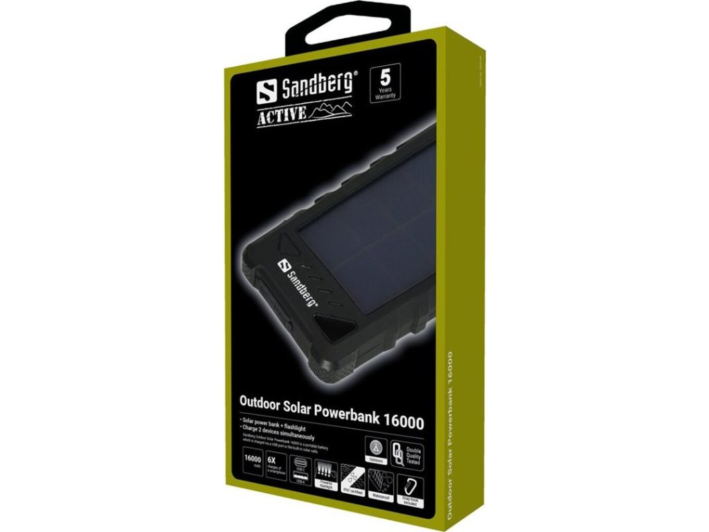 Sandberg přenosný zdroj USB 16000 mAh, Outdoor Solar powerbank, pro chytré telefony, černý
