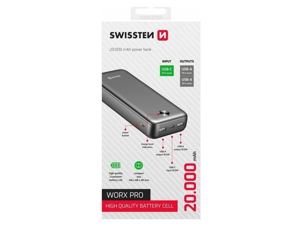 SWISSTEN WORX PRO 20 000 mAh – malé rozměry, velká energie