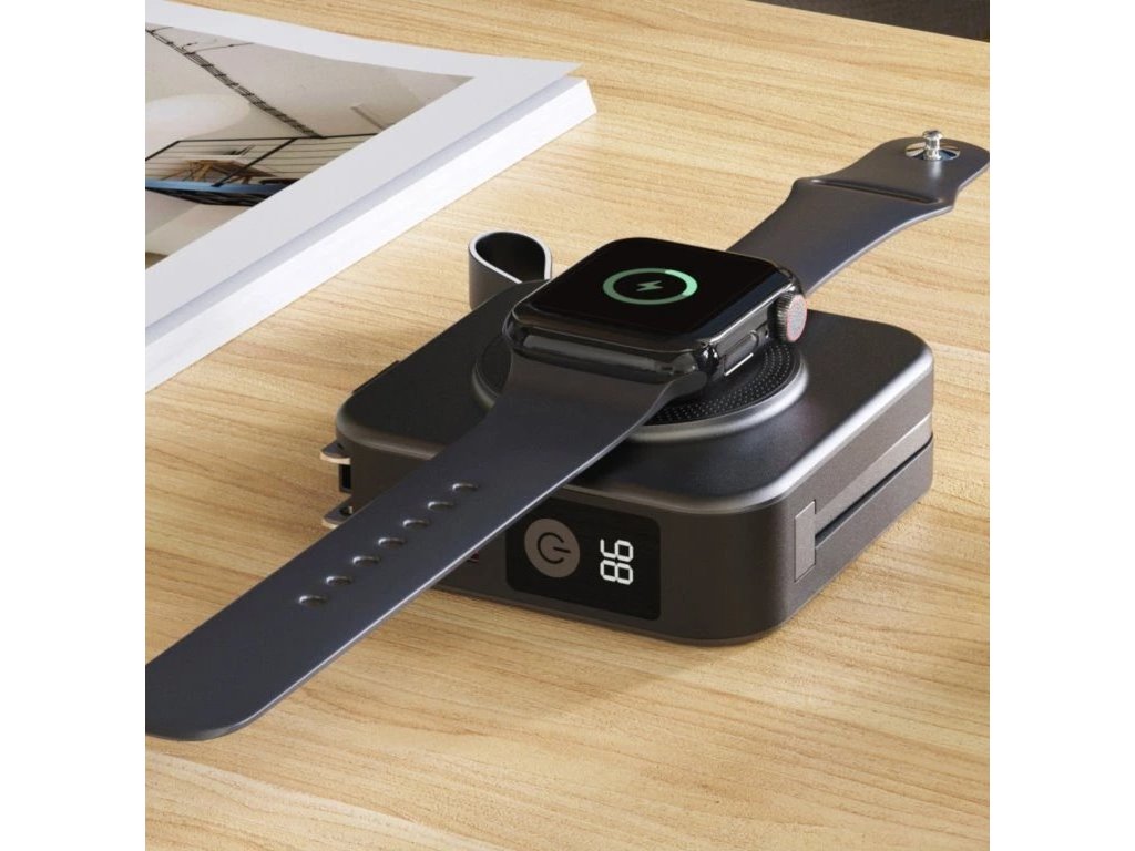 Zařízení nabízí kompletní nabíjecí ekosystém s bezdrátovou MagSafe podložkou o výkonu až 15 W, dedikovaným nabíjecím modulem pro Apple Watch (2,5 W), podložkou pro TWS sluchátka (5 W) a klasickými porty USB-C PD (20 W) a USB QC (18 W). Vestavěný 12cm USB-C kabel zajišťuje pohodlné nabíjení bez nutnosti nosit další kabely. Funkce pass-through charging umožňuje současné dobíjení powerbanky i připojených zařízení.