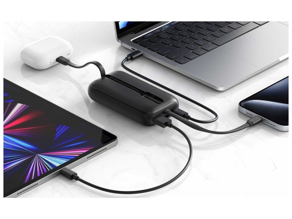 Powerbanka s kapacitou 10 000 mAh, navržená pro moderní uživatele, kteří potřebují nabíjet více zařízení současně. Nabízí jeden port USB-C, jeden port USB a integrované USB-C a Lightning kabely. Maximální výstupní výkon až 35 W umožňuje rychlé nabíjení telefonů, tabletů a menších notebooků. Potěší také praktický LED displej zobrazující aktuální stav nabití. Pro nabíjení samotné powerbanky slouží vstupní konektor USB-C. Vyrobena je z ohnivzdorného plastu, což výrazně zvyšuje její odolnost a bezpečnost.