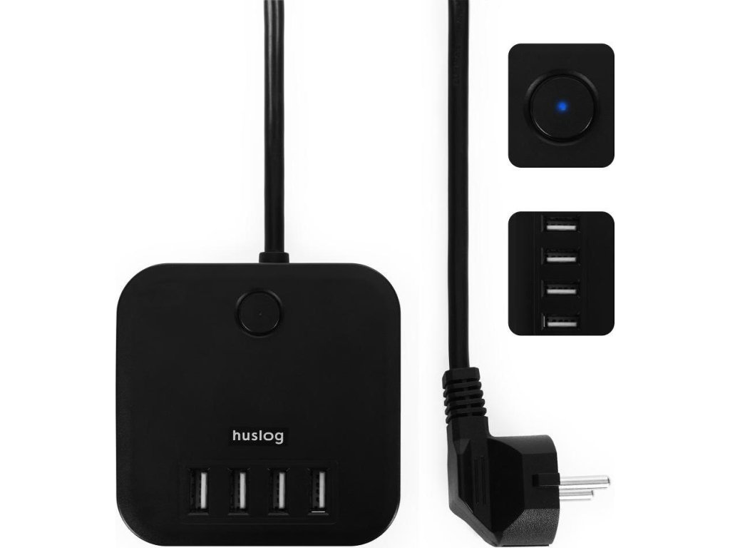 Nabíjecí stanice Huslog 12W 3xzásuvka, 4xUSB černá