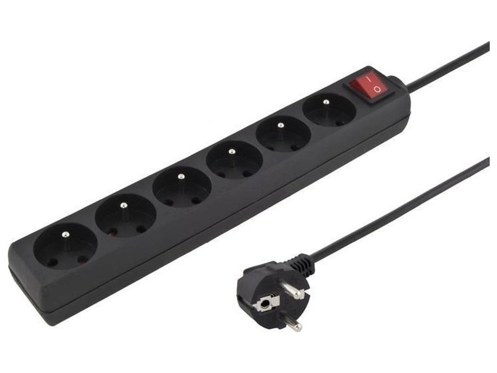 PREMIUMCORD Prodlužovací přívod 230V 3m 6 zásuvek + vypínač, černý