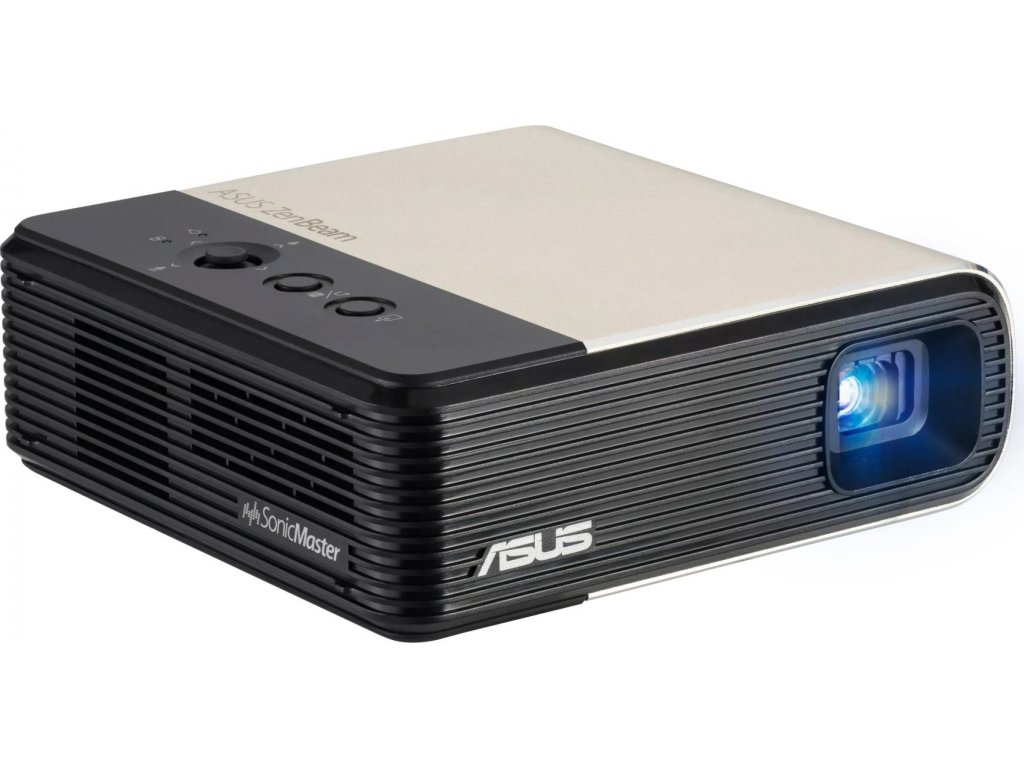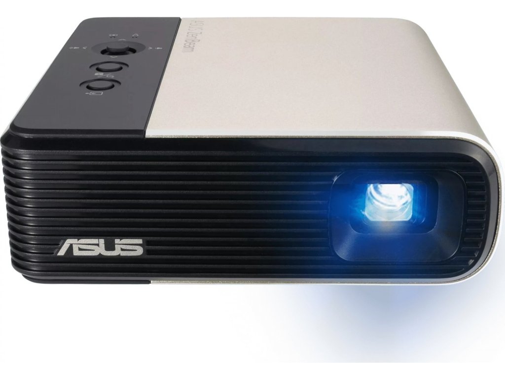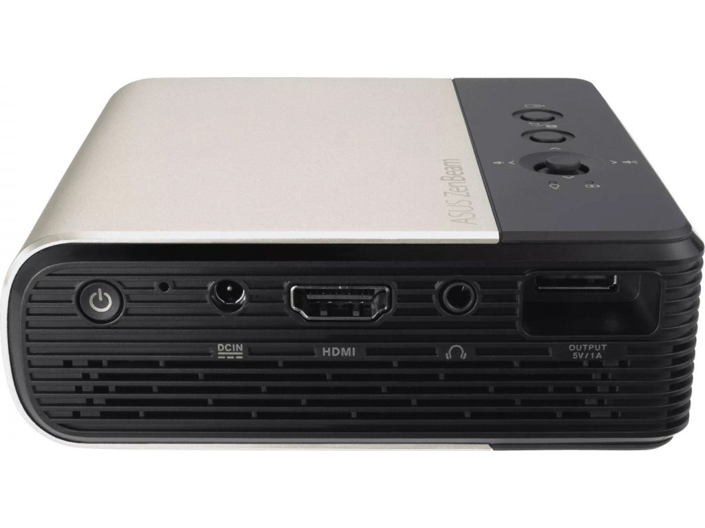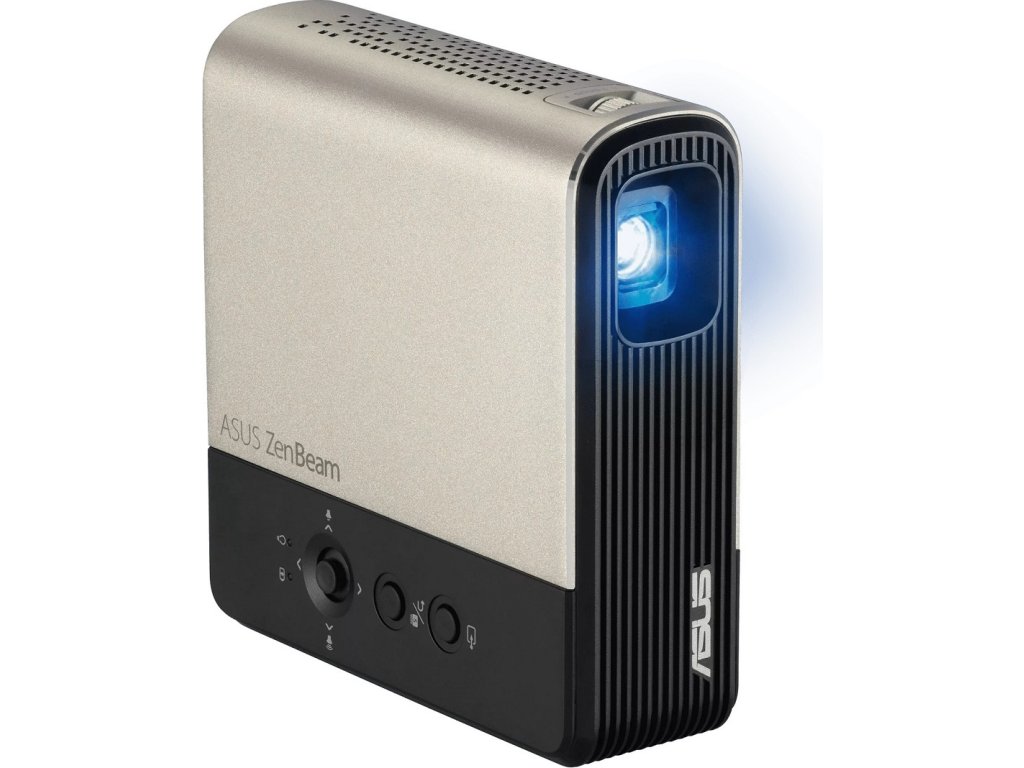 ASUS ZenBeam E2 mini LED projector, automatic portrait projection mode, 300 LED lumens, WVGA (854 x 480), wireless mirroring, built-in battery for up to 4-hour portable video playback, power bank, USB Type-A, HDMI, 5-watt speaker