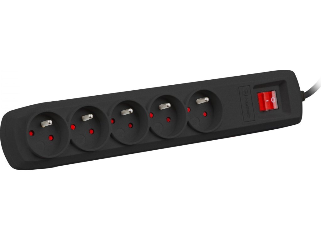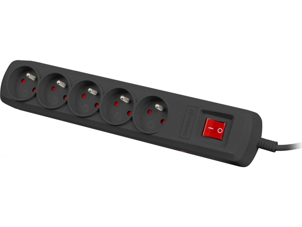Natec přepěťová ochrana BERCY 400, 5m, 5 zásuvek, vypínač, černá