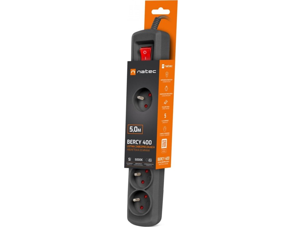 Pevná a odolná napájecí lišta s přepěťovou ochranou je naprostou nezbytností pro zajištění bezpečnosti cenných elektronických zařízení. Natec BERCY 400 je bezpečnostní napájecí lišta určená k ochraně připojených zařízení před zkratem, přetížením a přepětím. Pro komplexní ochranu byla lišta obohacena o automatickou pojistku, vypínač a dětskou pojistku.
